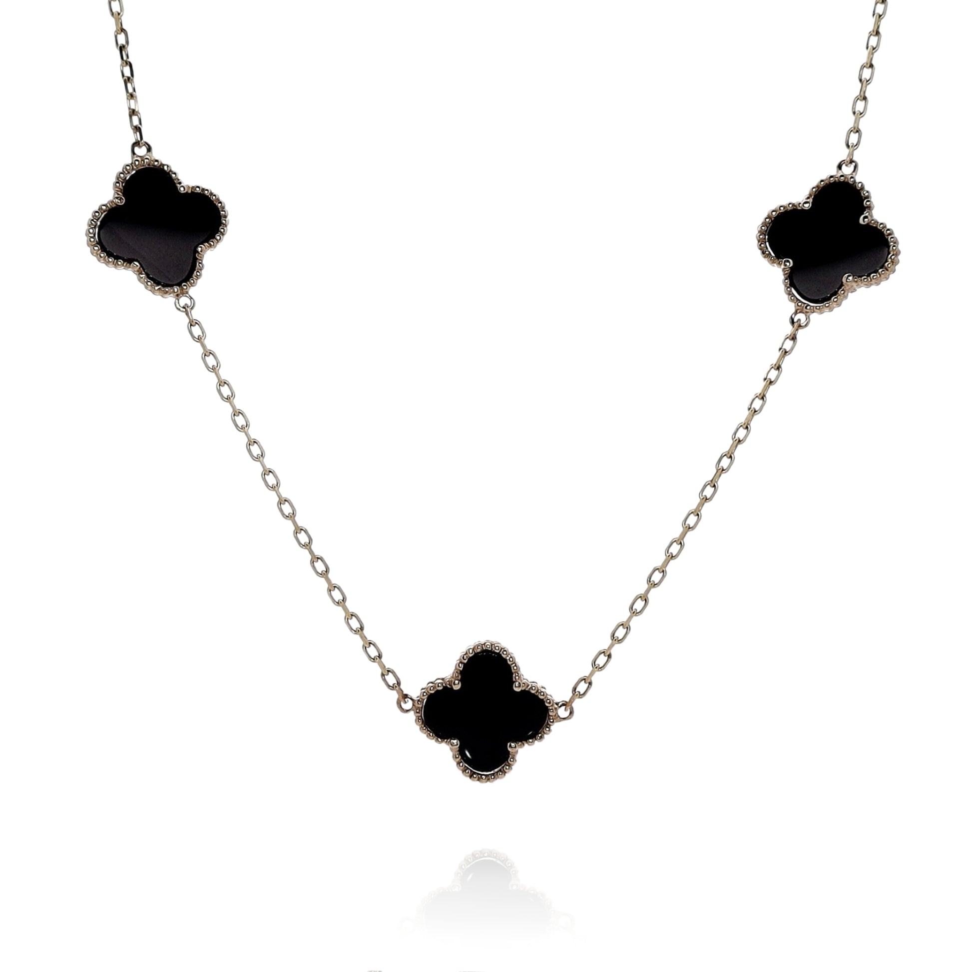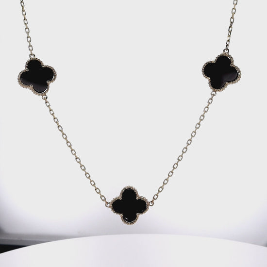 14k Yellow Gold 18" Black Onyx Clover Design Station Necklace