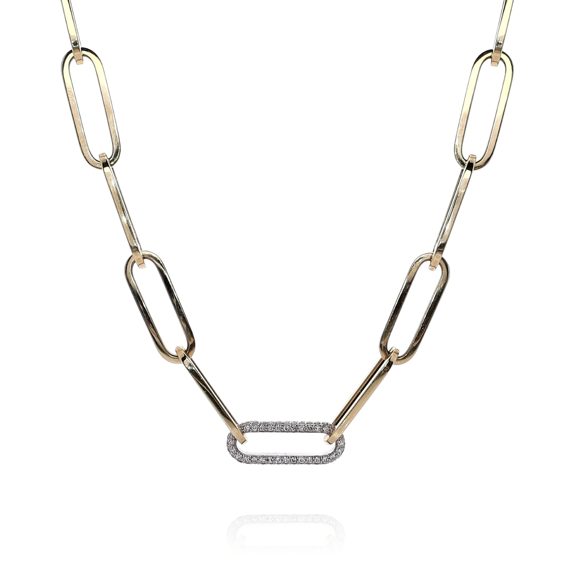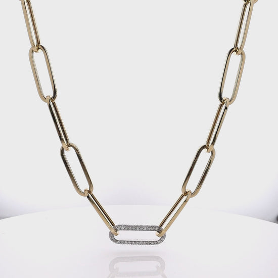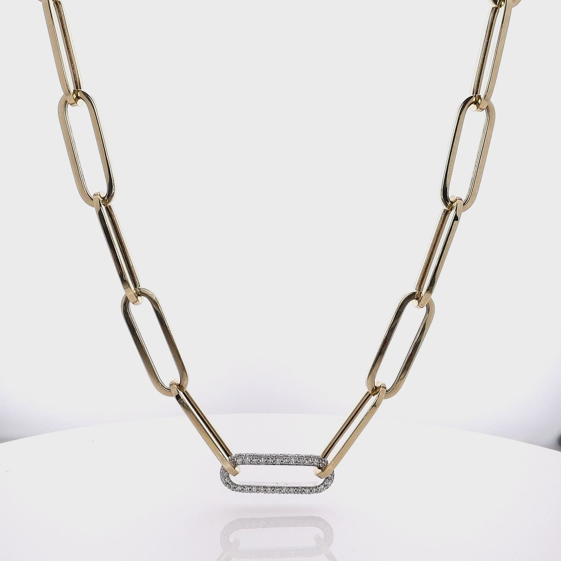 14k Yellow Gold 18" Large Paperclip Link Diamond Chain Necklace