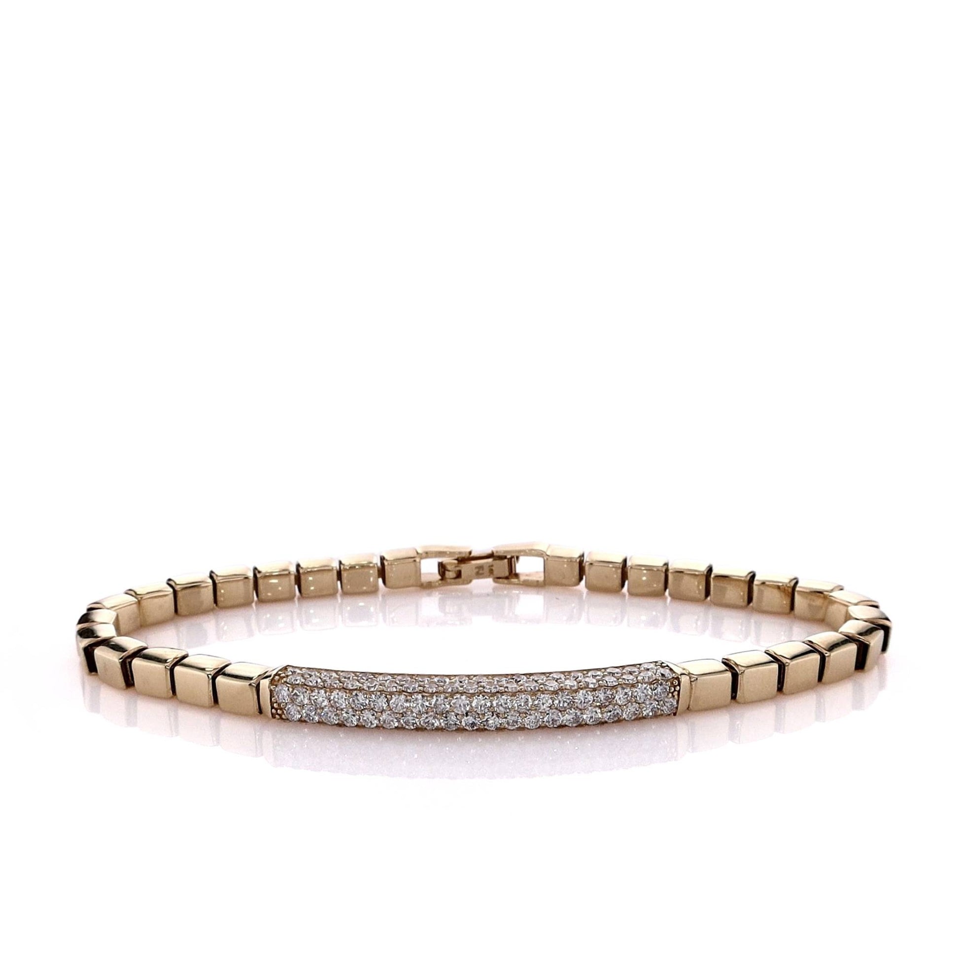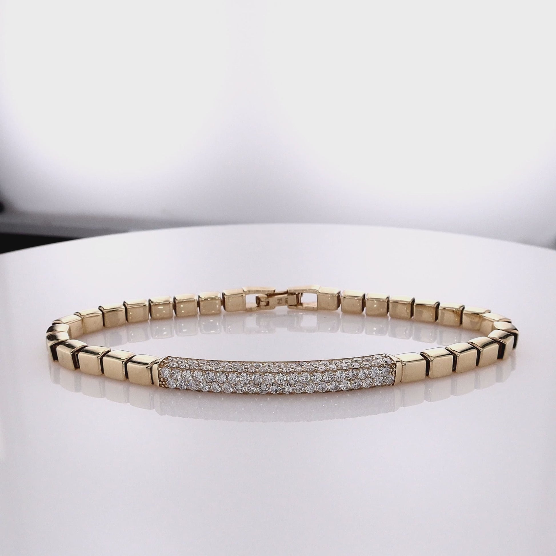 14k Yellow Gold 3 Sided Pave Diamond Bar on Box Link Chain Bracelet