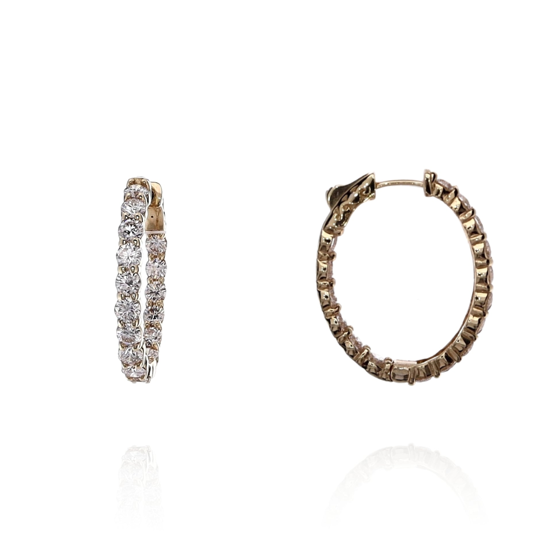 14k Yellow Gold 4.87ct In and Out Oval Diamond Hoop Earrings