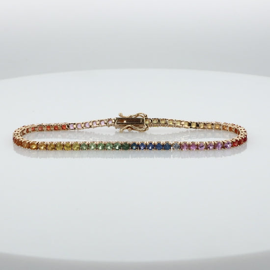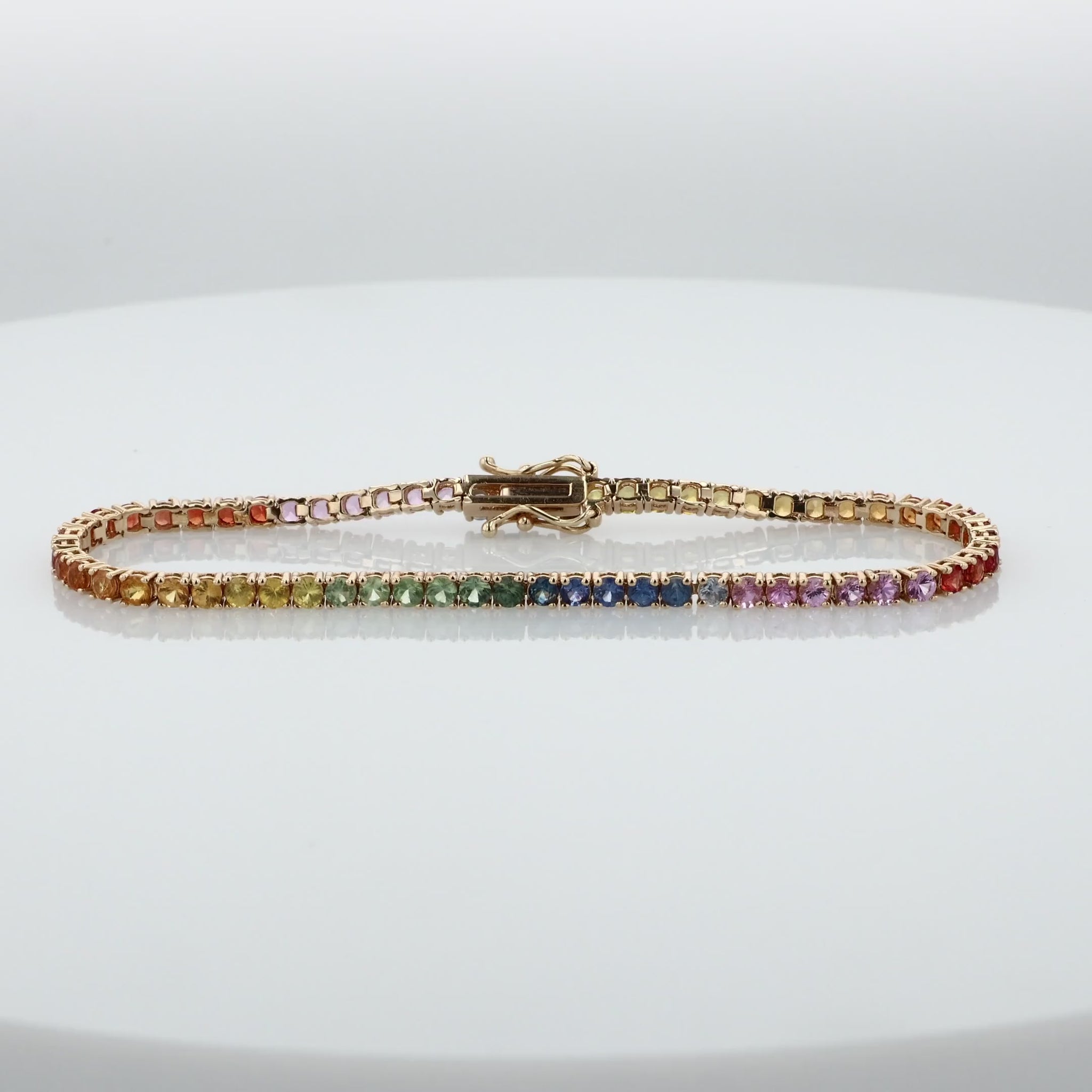 14k Yellow Gold 7" Bracelet Multi-Color Round Sapphire Tennis Bracelet
