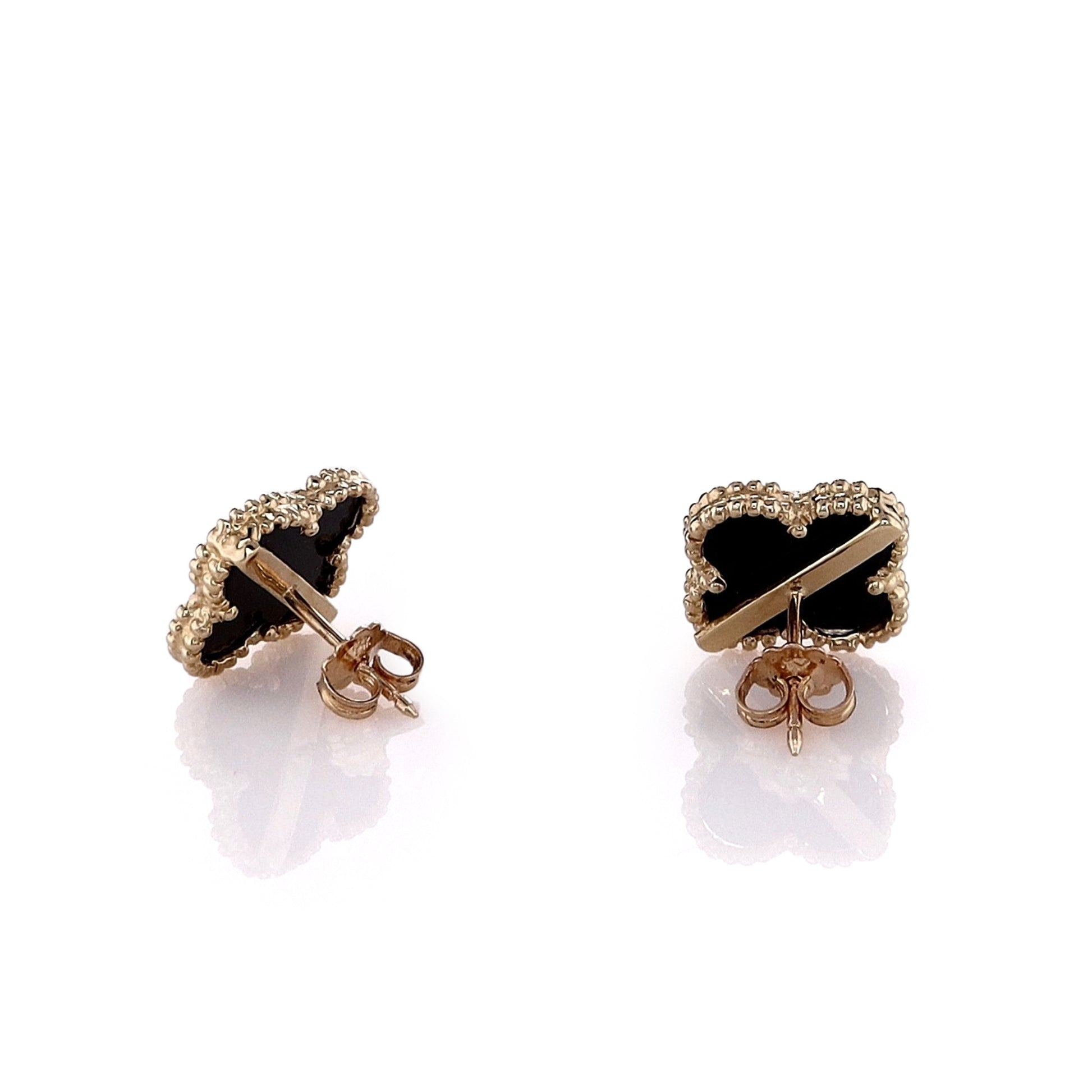 14k Yellow Gold Beaded Edge Black Onyx Clover Stud Earrings