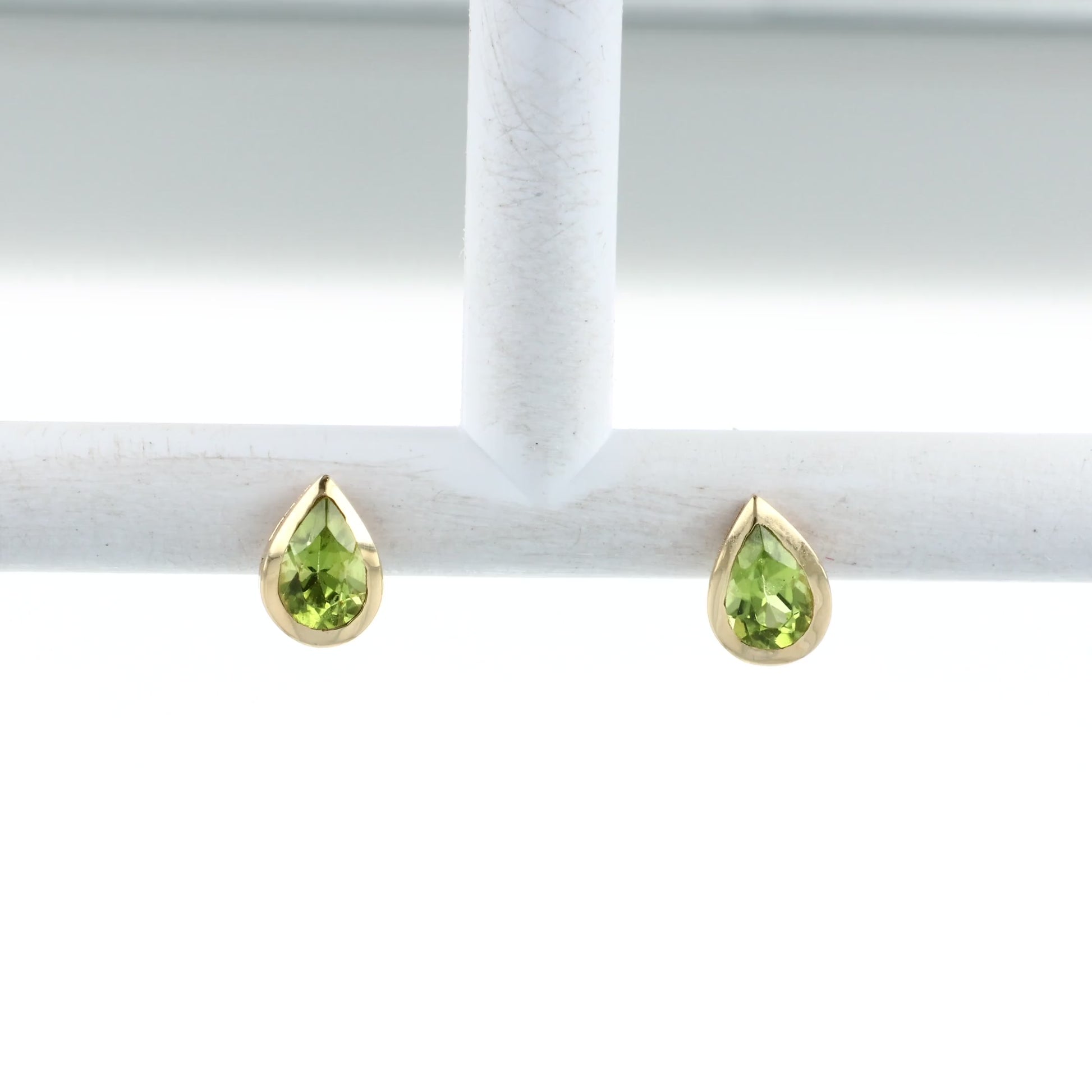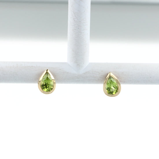 14k Yellow Gold Bezel Set Pear Shape Peridot Stud Earrings