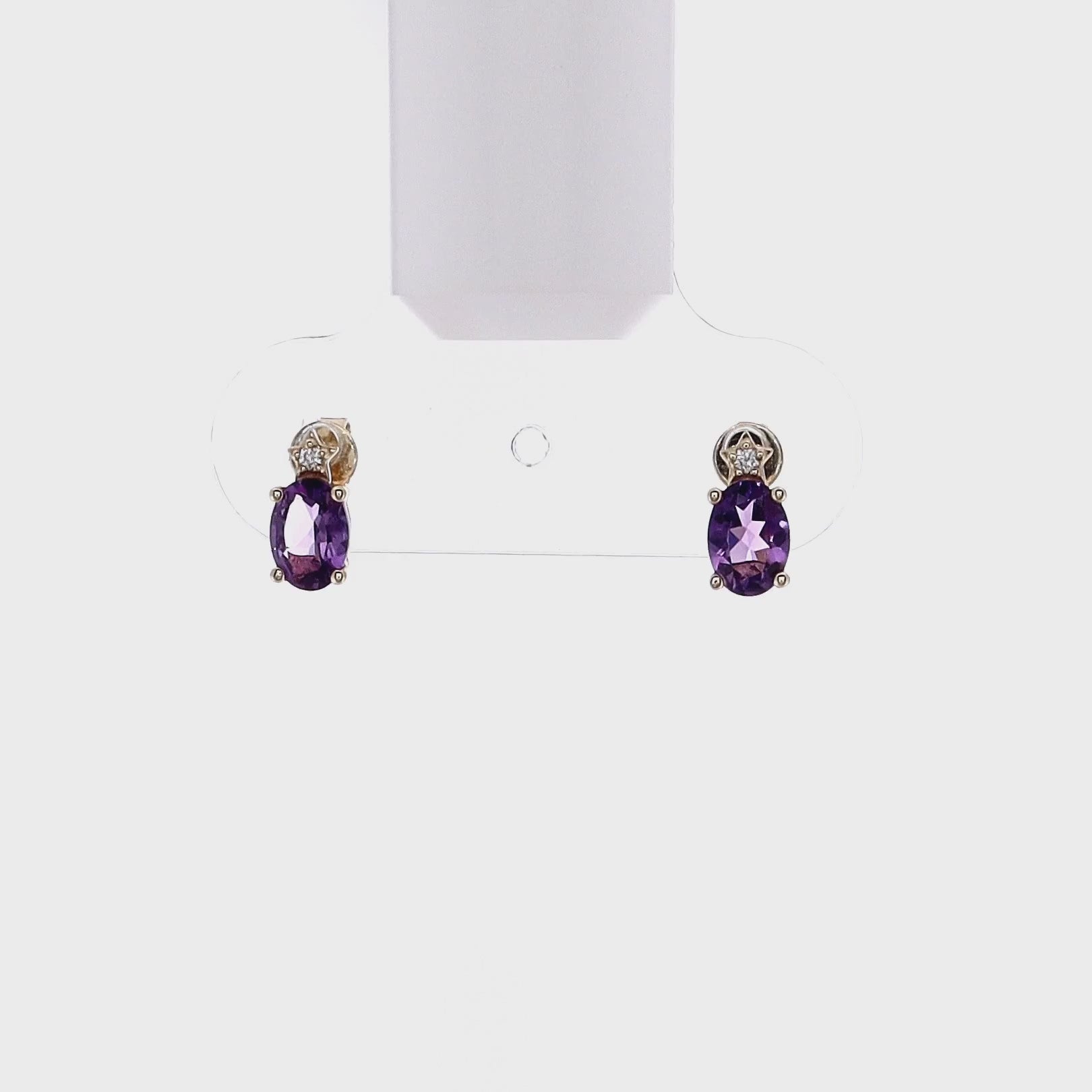 14k Yellow Gold Oval Amethyst And Diamond Stud Earrings