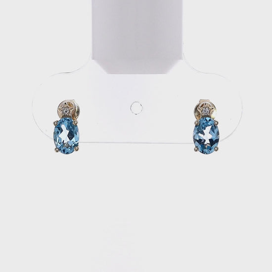 14k Yellow Gold Oval Blue Topaz and Diamond Stud Earrings