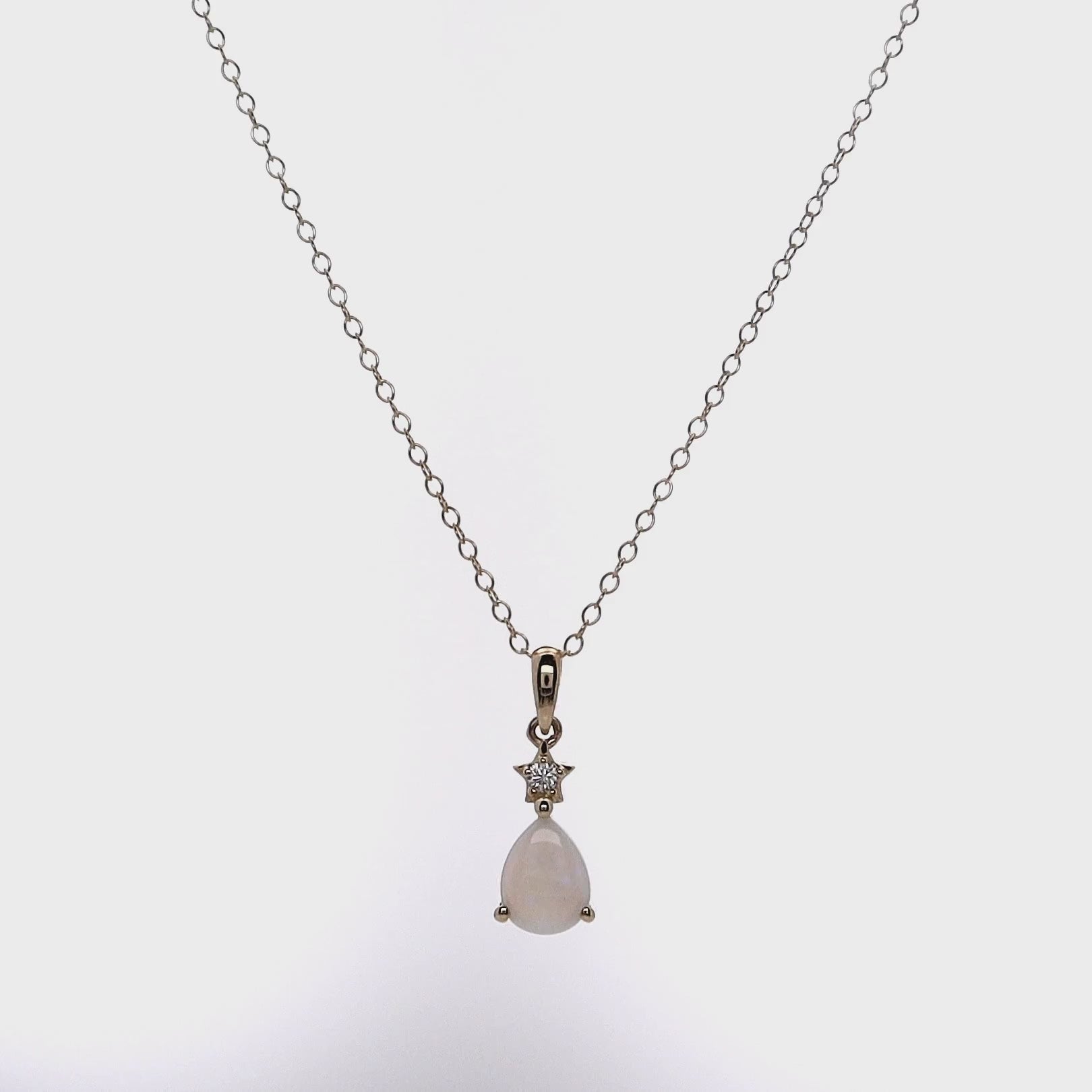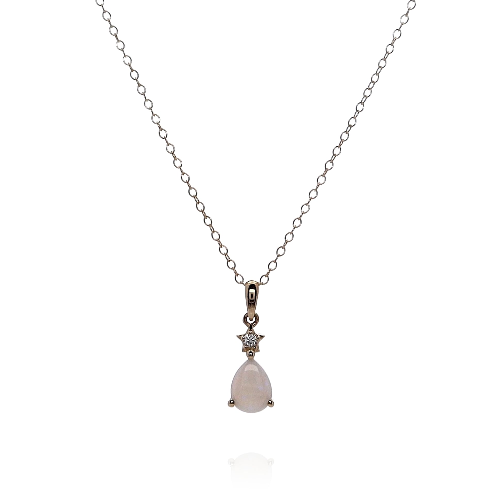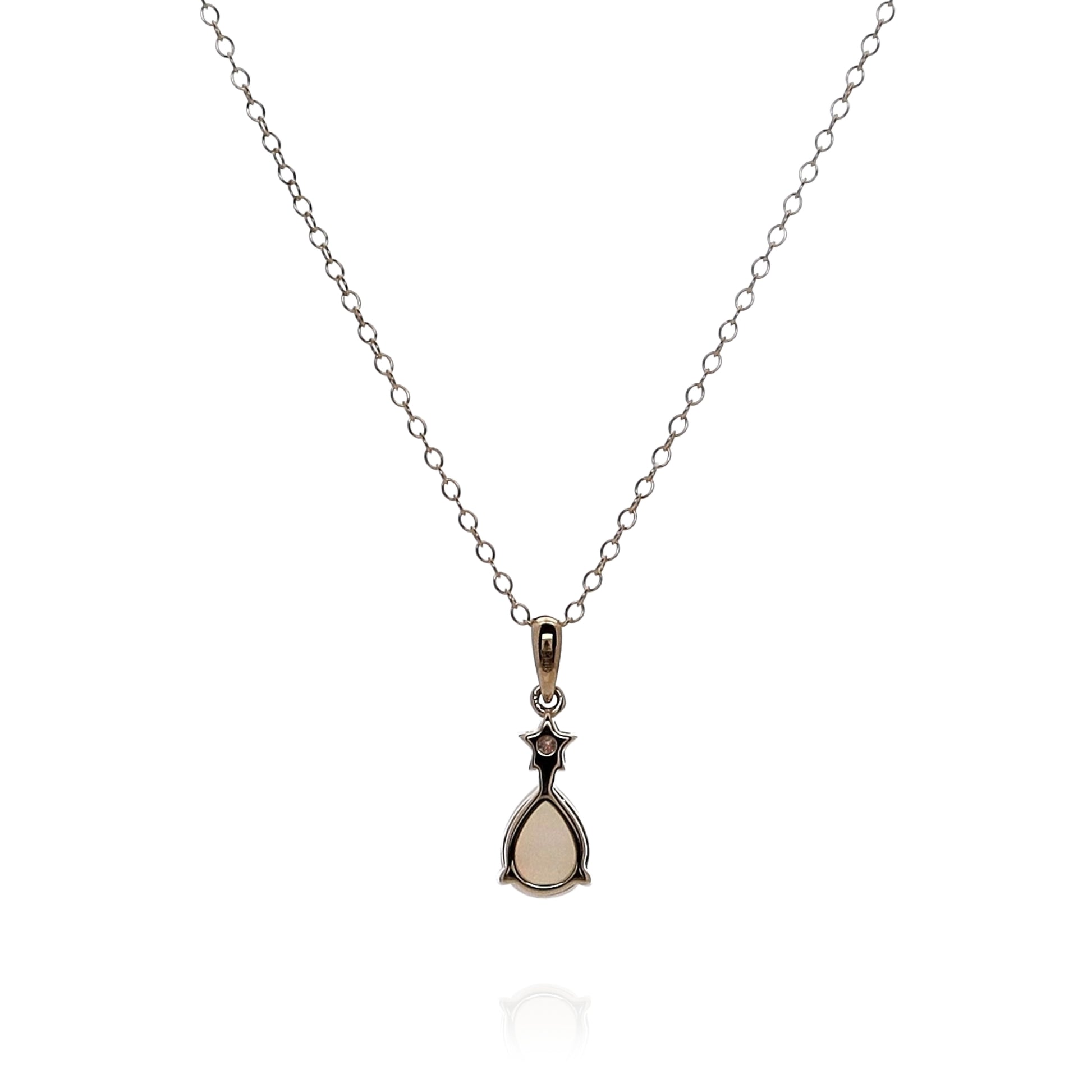 14k Yellow Gold Pear Shaped Opal and Diamond Pendant Necklace