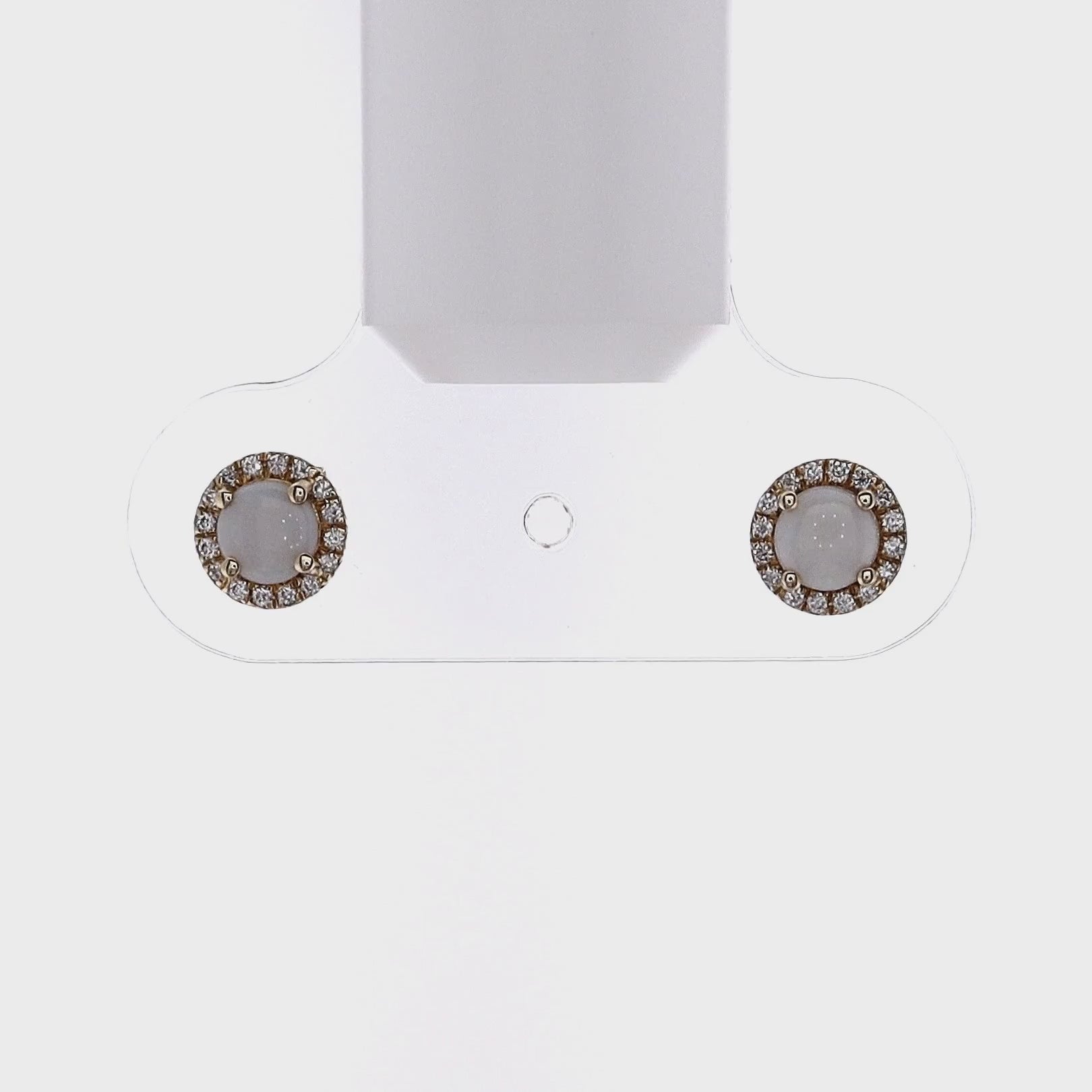 14k Yellow Gold Round Opal and Diamond Halo Stud Earrings