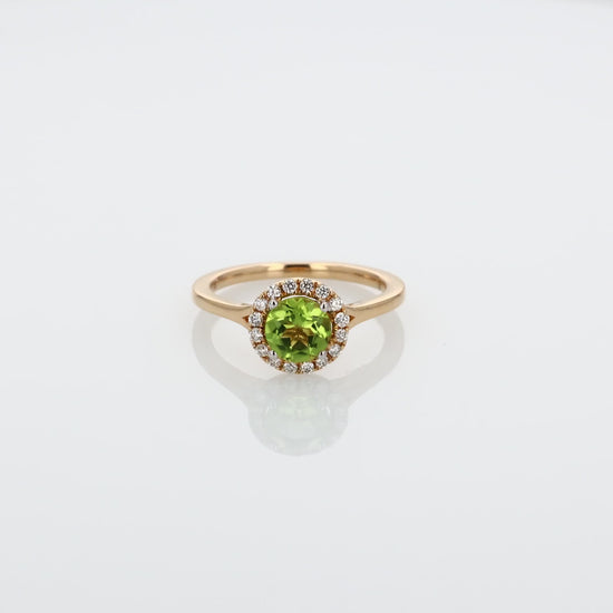14k Yellow Gold Round Peridot and Diamond Halo Ring