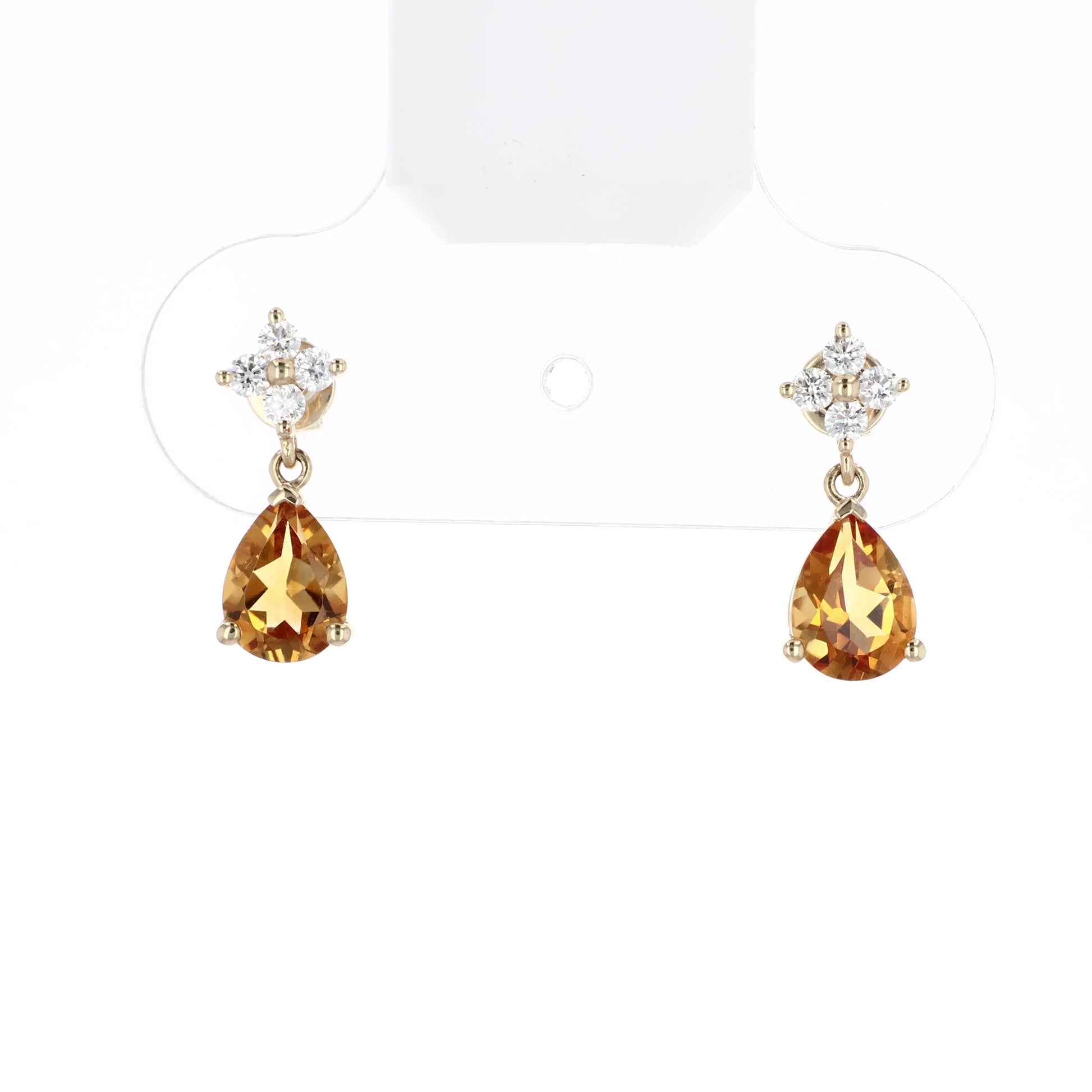 14Y PCD Pear Shape Citrine Drop Earrings (4) 8 RBC D.25ct