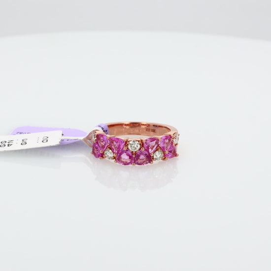 18k Rose Gold Wide Alternating Pink Sapphire and Diamond Band