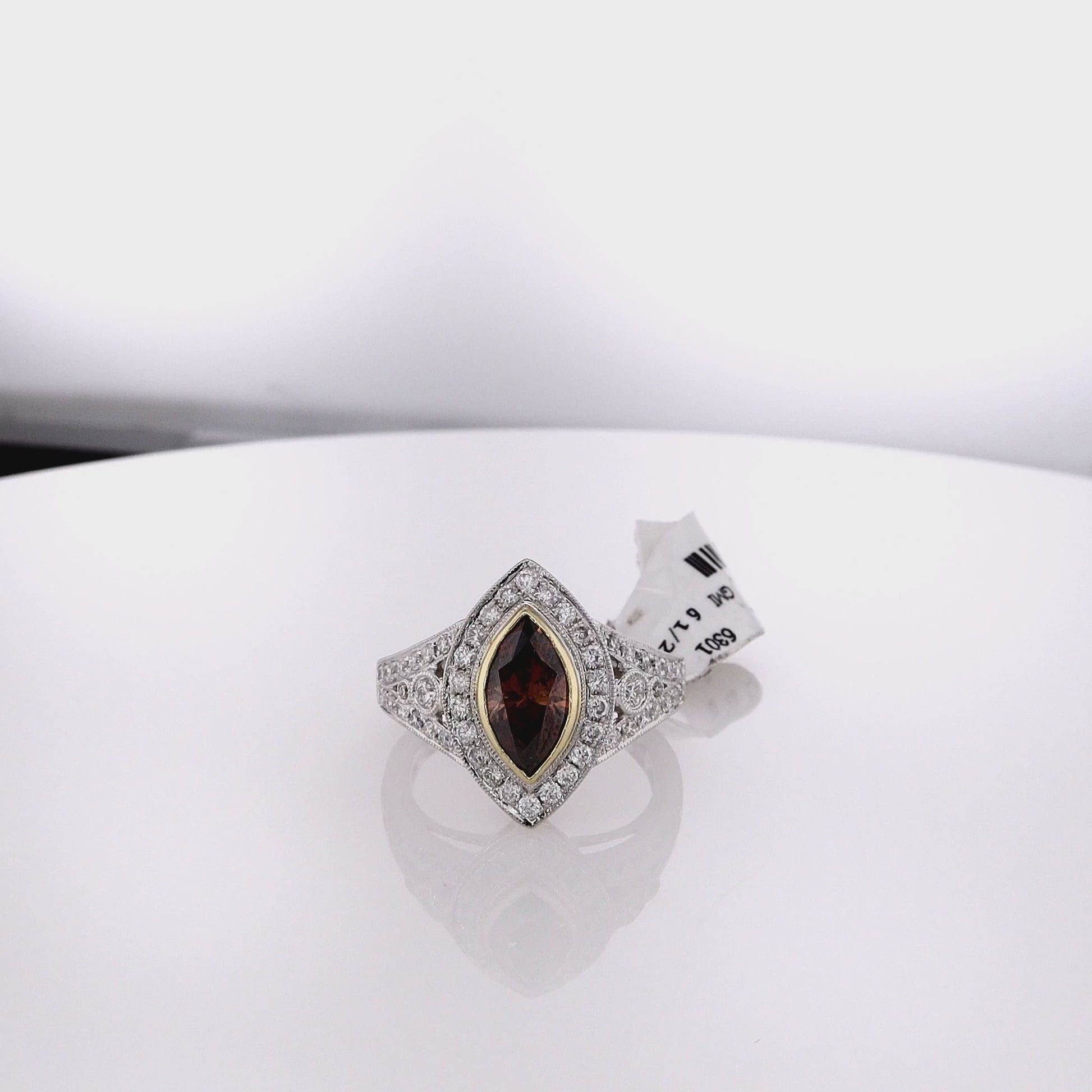 Diamonds: 1 Marquise Cut Fancy Dark Orange Brown Diamond (1ct Total Weight, GIA Cert# 1226977350) and 54 White Round Brilliant Cut Diamonds (0.63ct Total Weight)