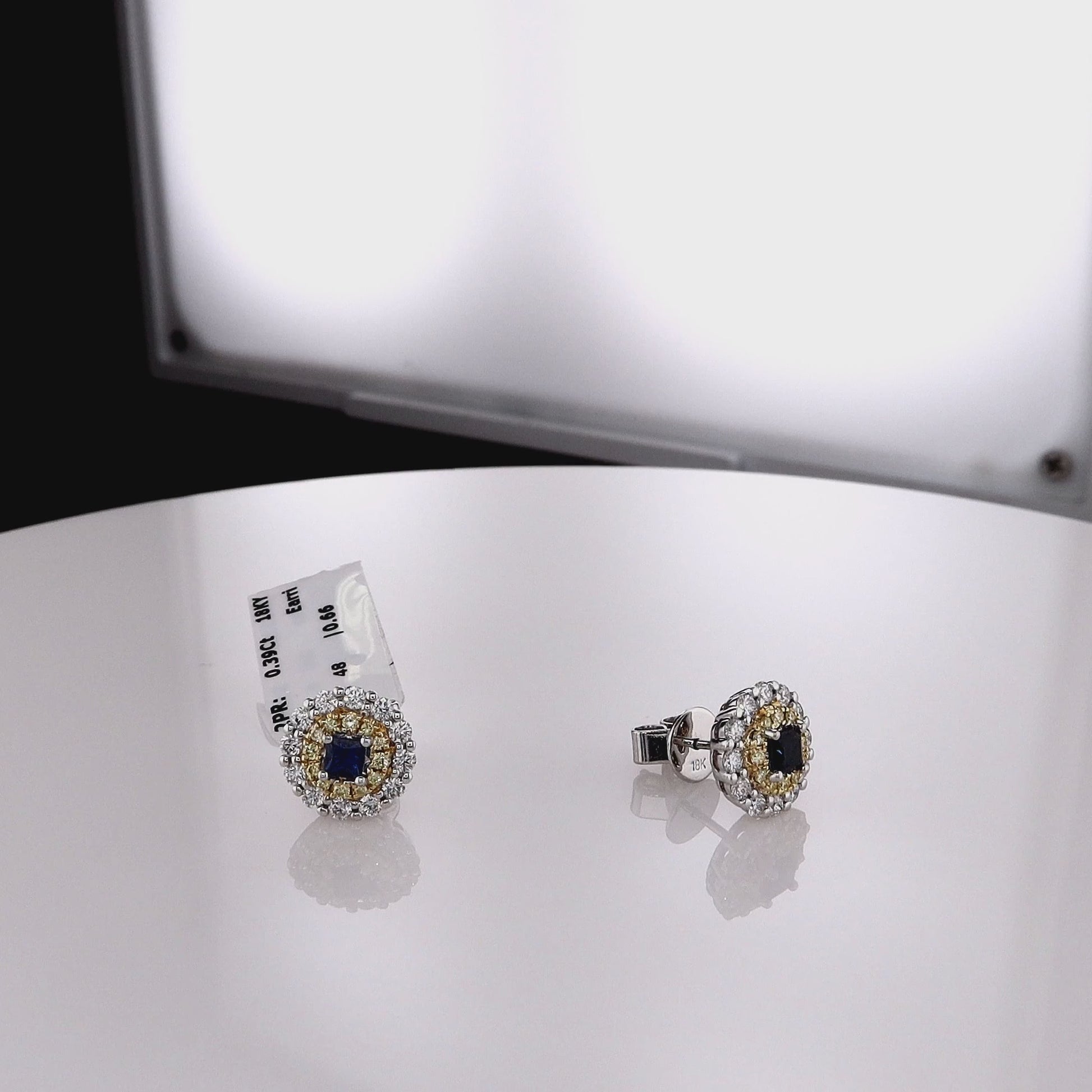 18k Two-Tone Sapphire and Yellow/White Diamond Double Halo Stud Earrings