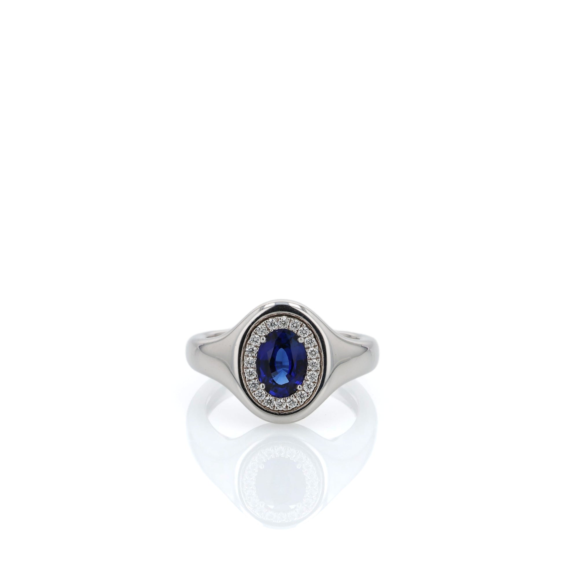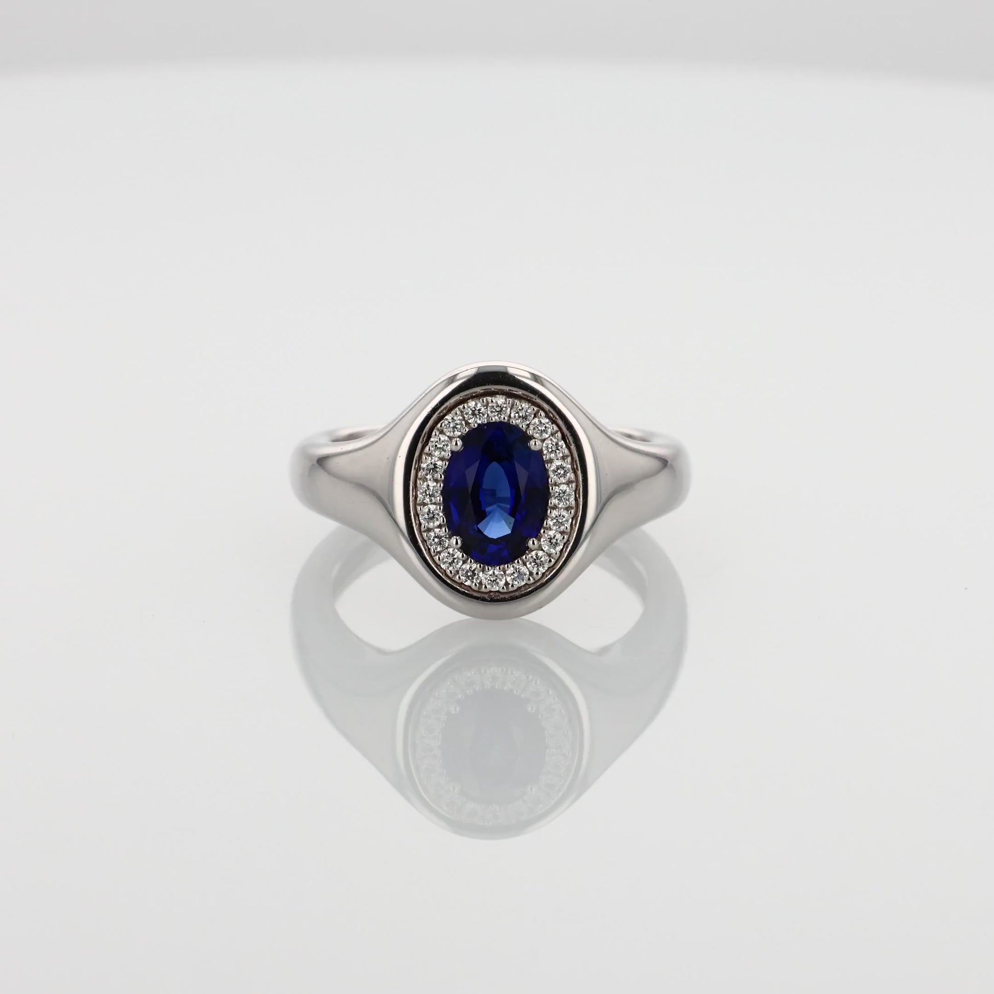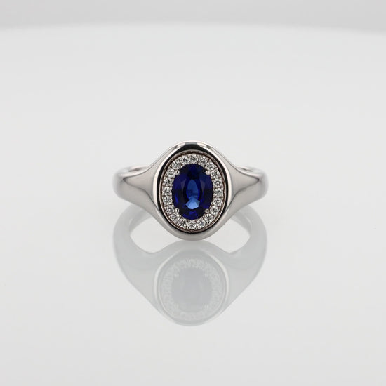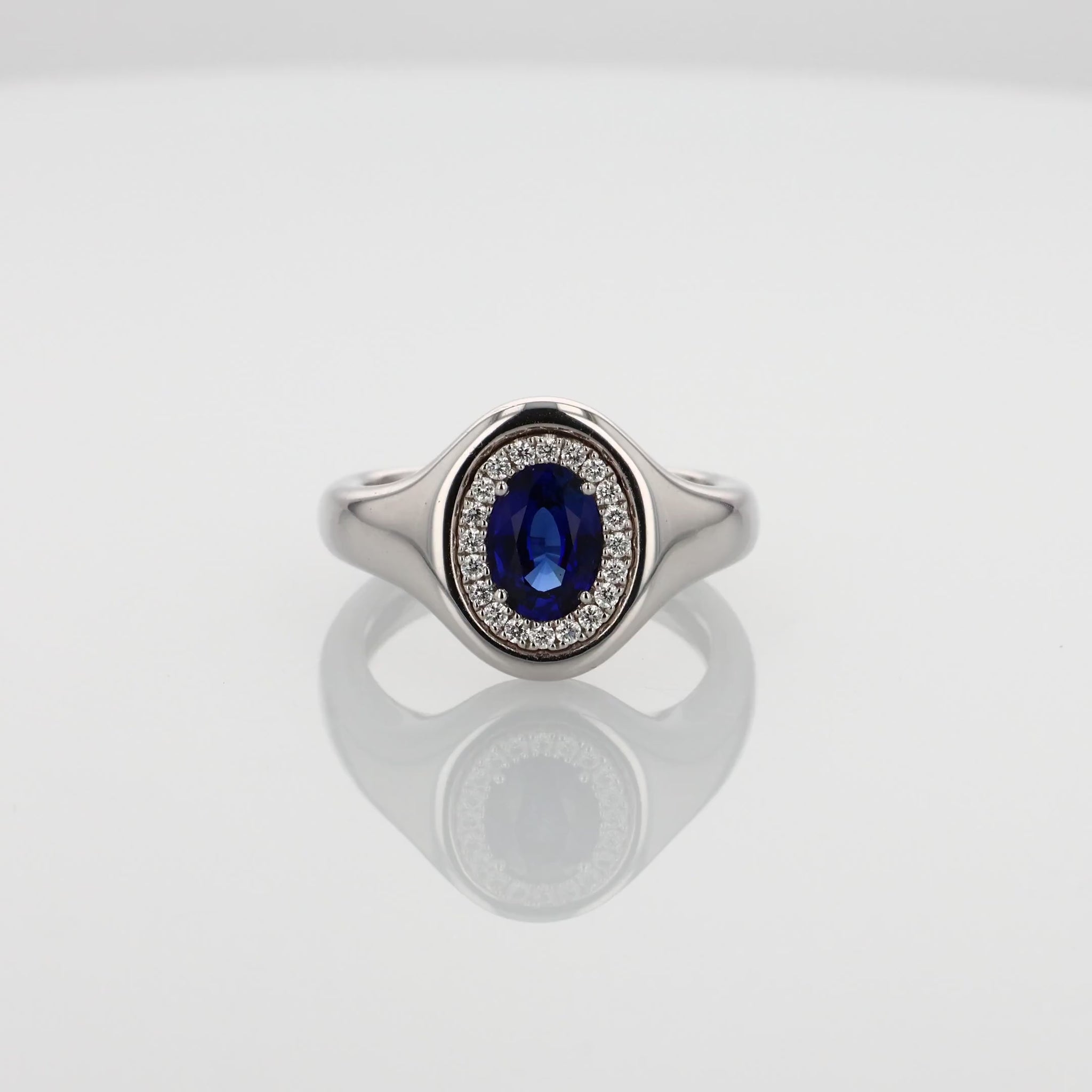18k White Gold 1.10ct Oval Sapphire and Diamond Halo Ring