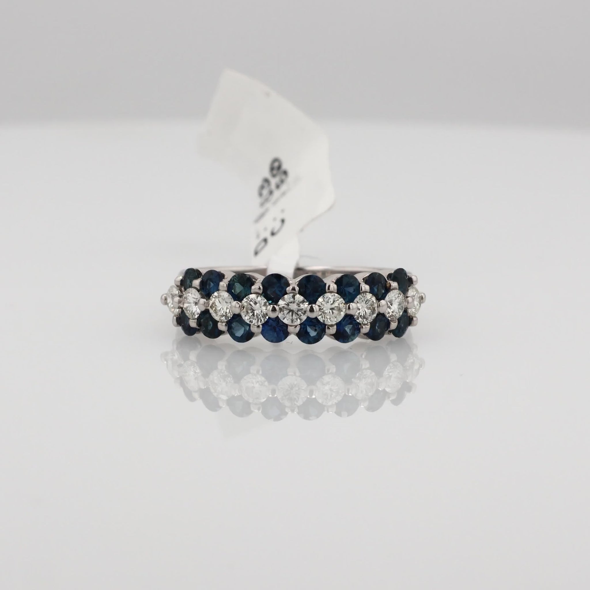 18k White Gold 3 Row Blue Sapphire and Diamond Center Row Band
