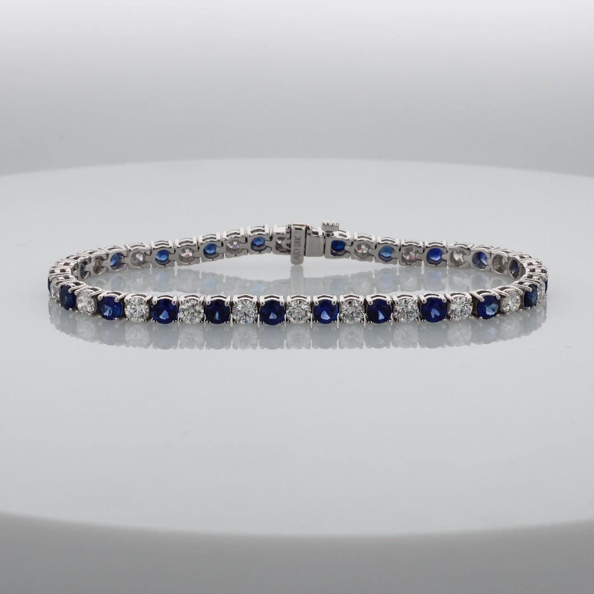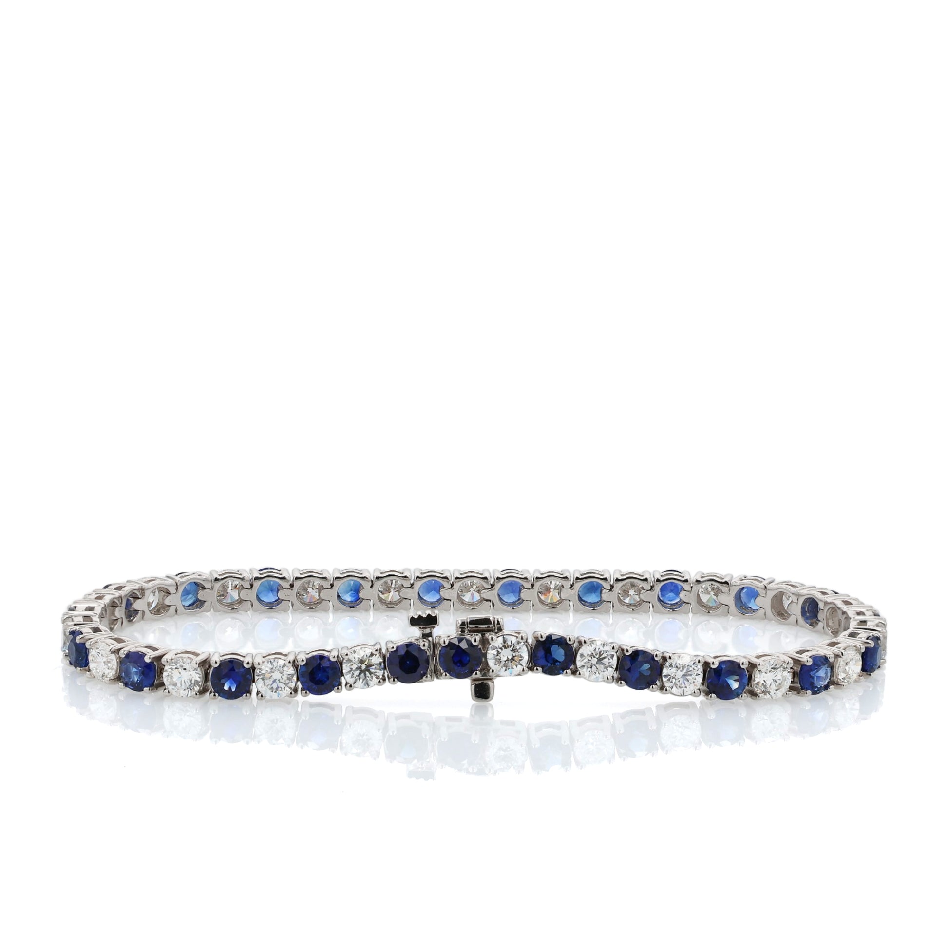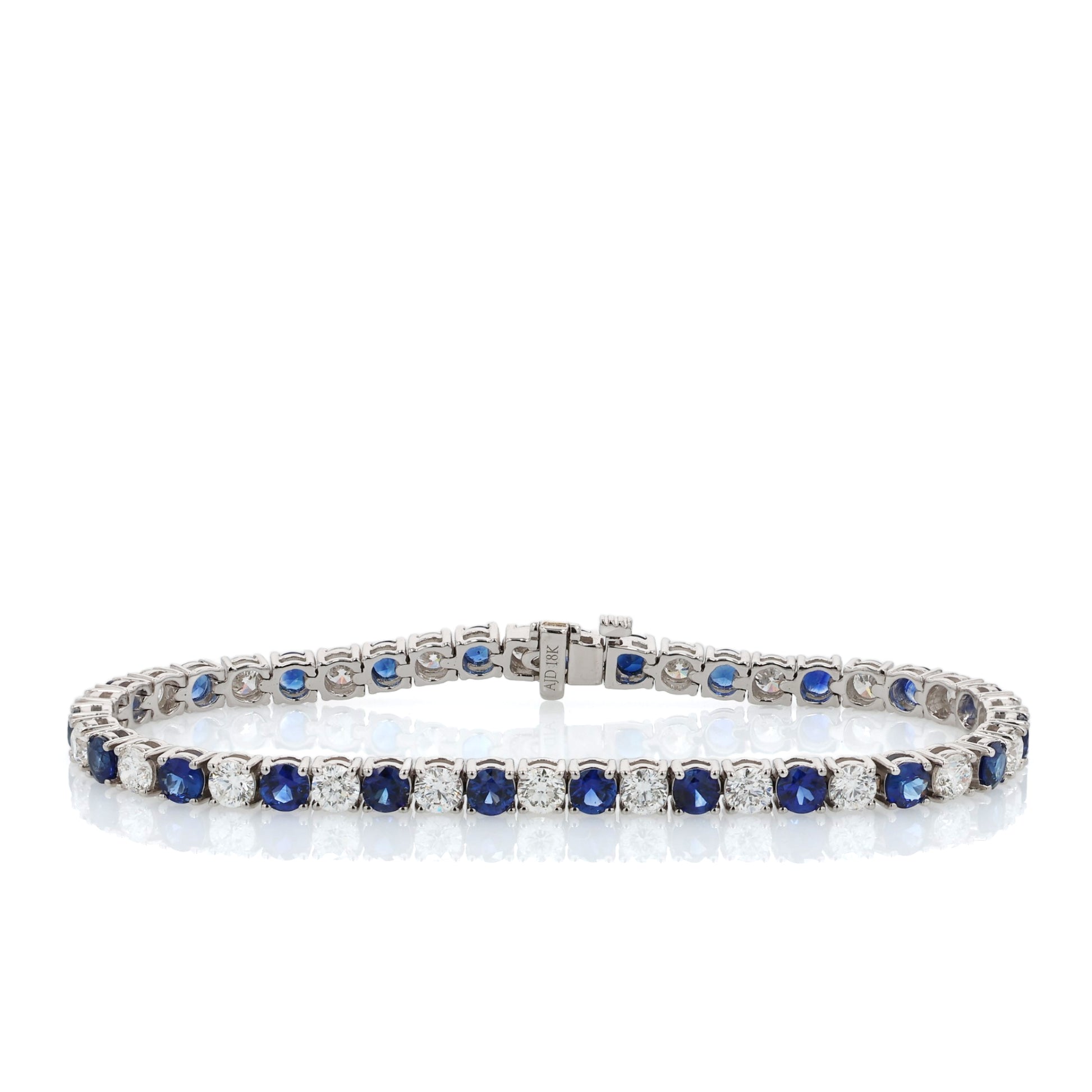18k White Gold 7" Alternating Round Sapphire and Diamond Bracelet
