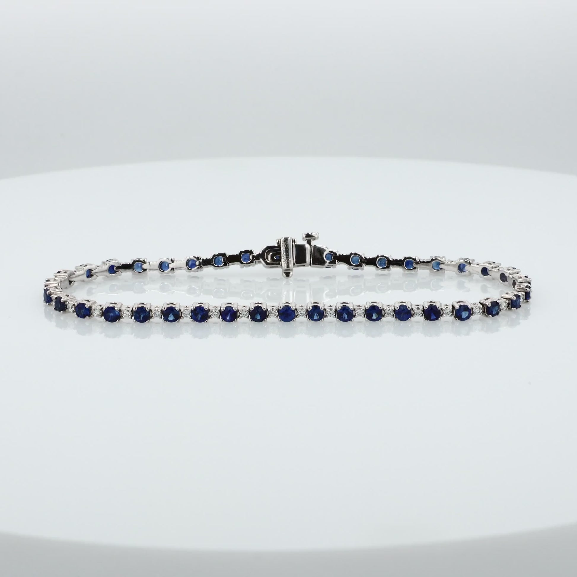 18k White Gold 7" Alternating Round Sapphire and Diamond Tennis Bracelet