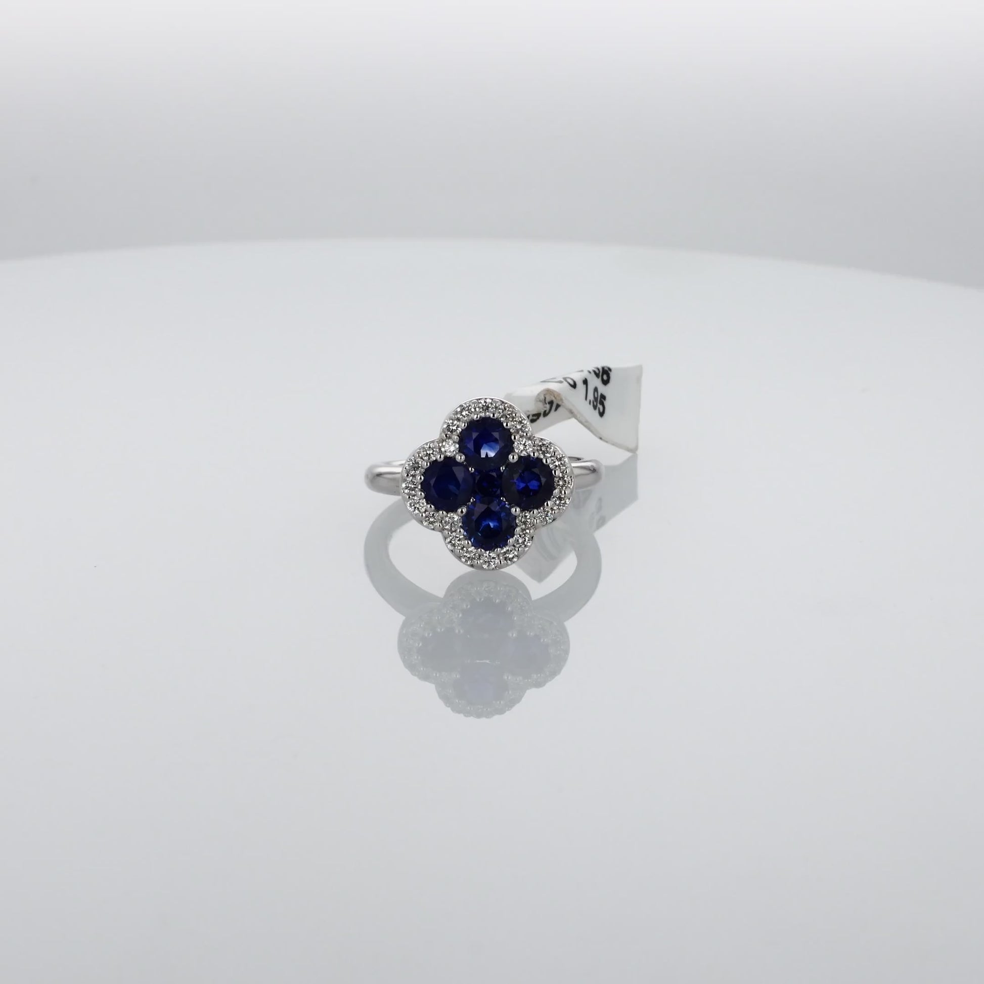 18k White Gold Clover Shaped Sapphire and Diamond Halo Ring