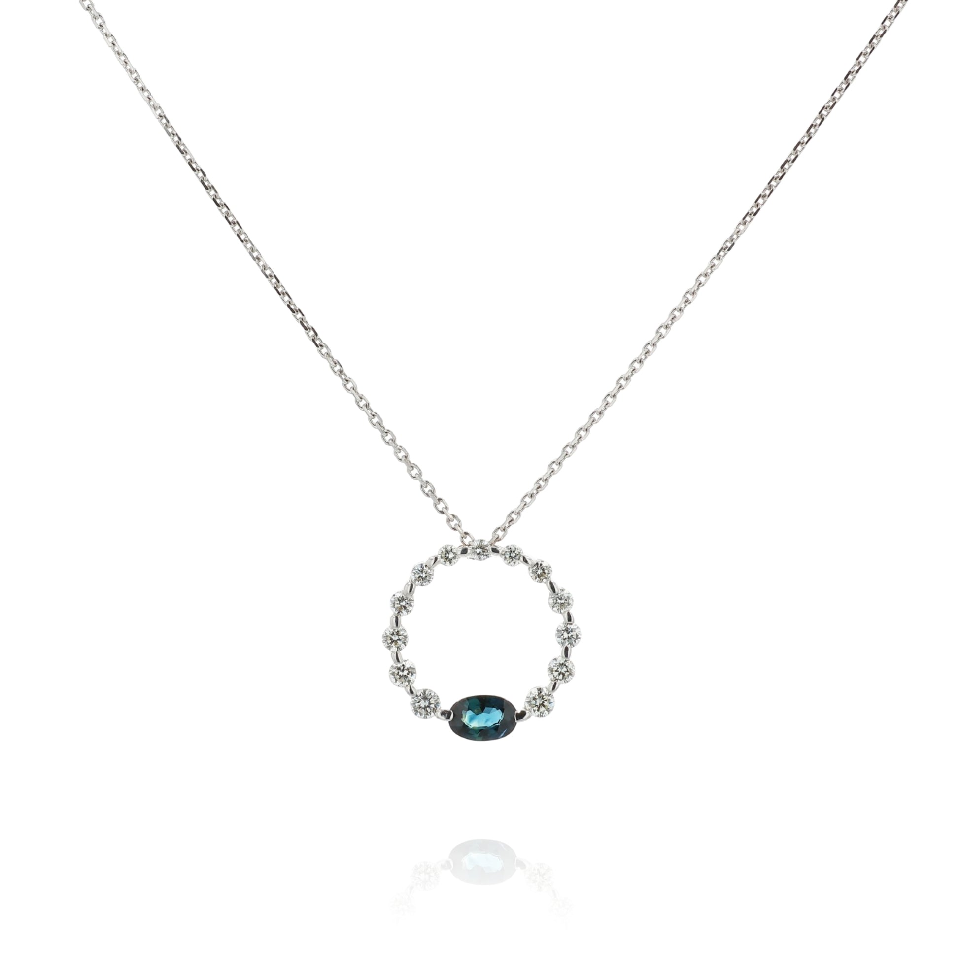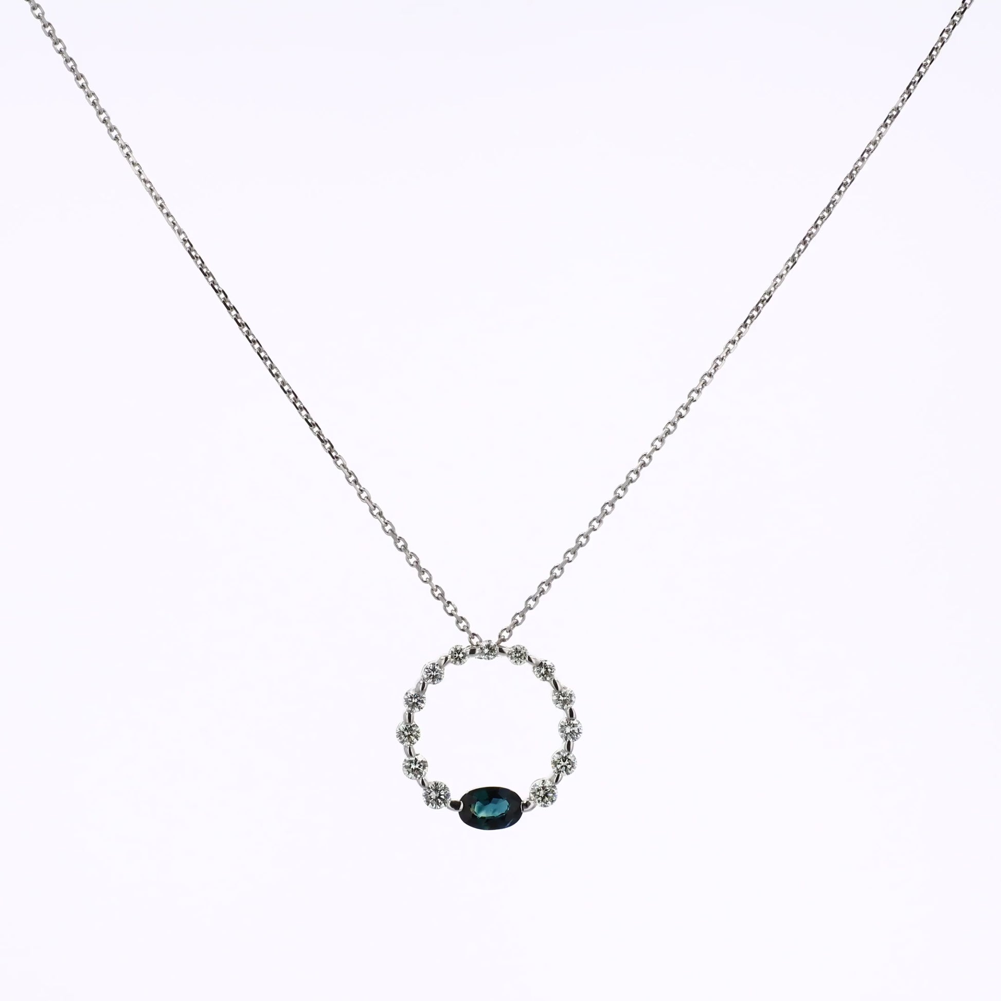 18k White Gold Graduated Open Circle Sapphire and Diamond Pendant Necklace