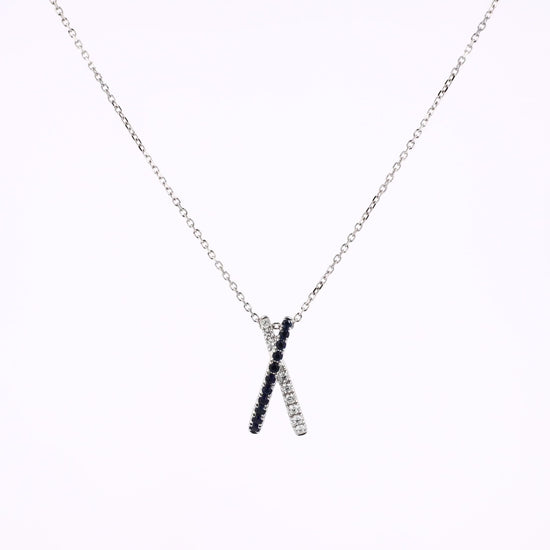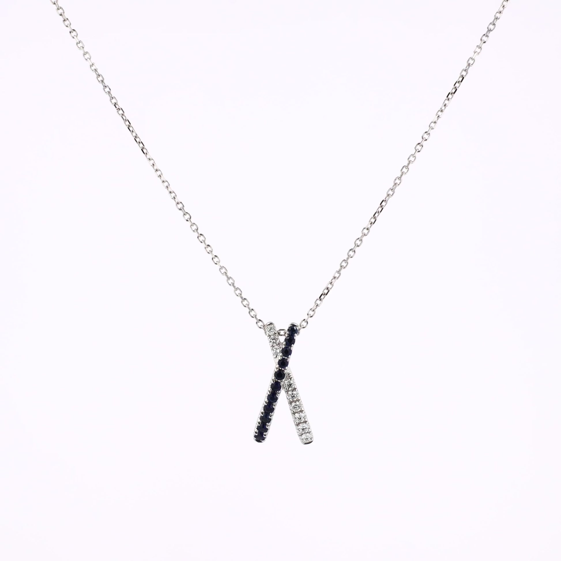 18k White Gold Half Sapphire and Diamond 'X' Design Pendant Necklace