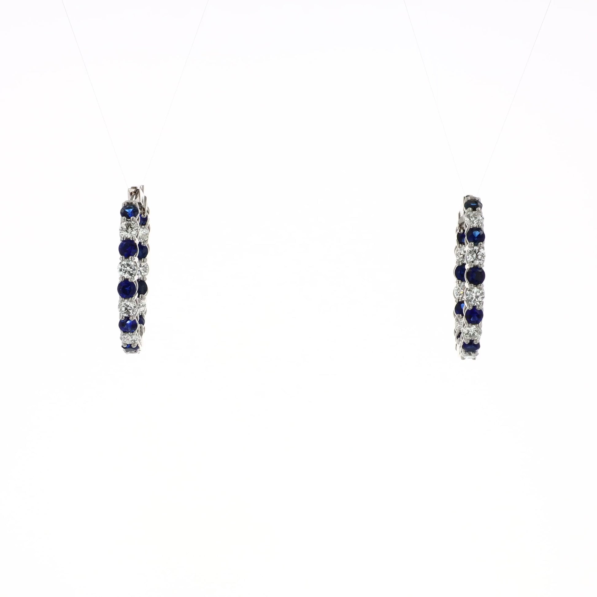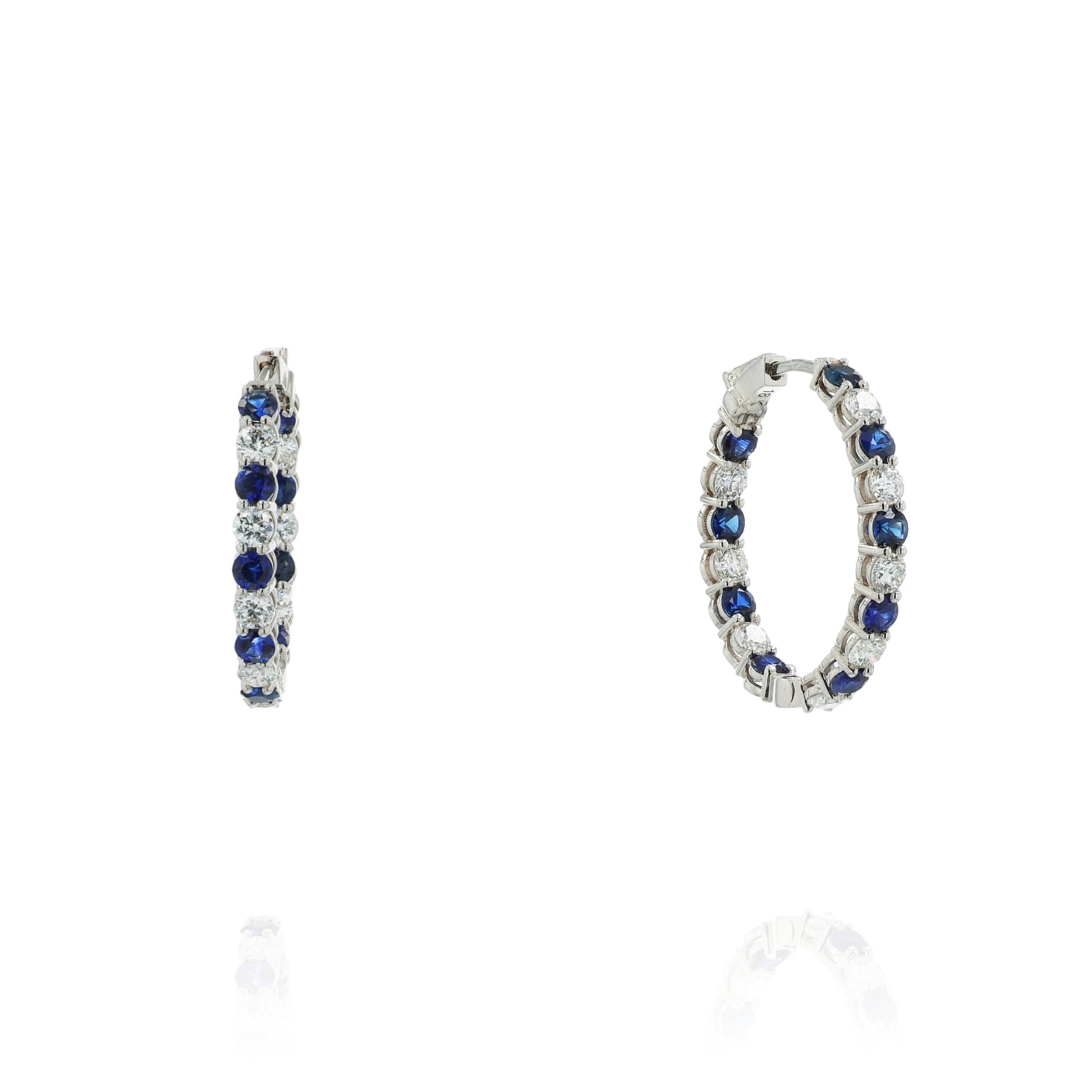 18k White Gold In and Out Alternating Sapphire and Diamond Oval Hoop Earrings