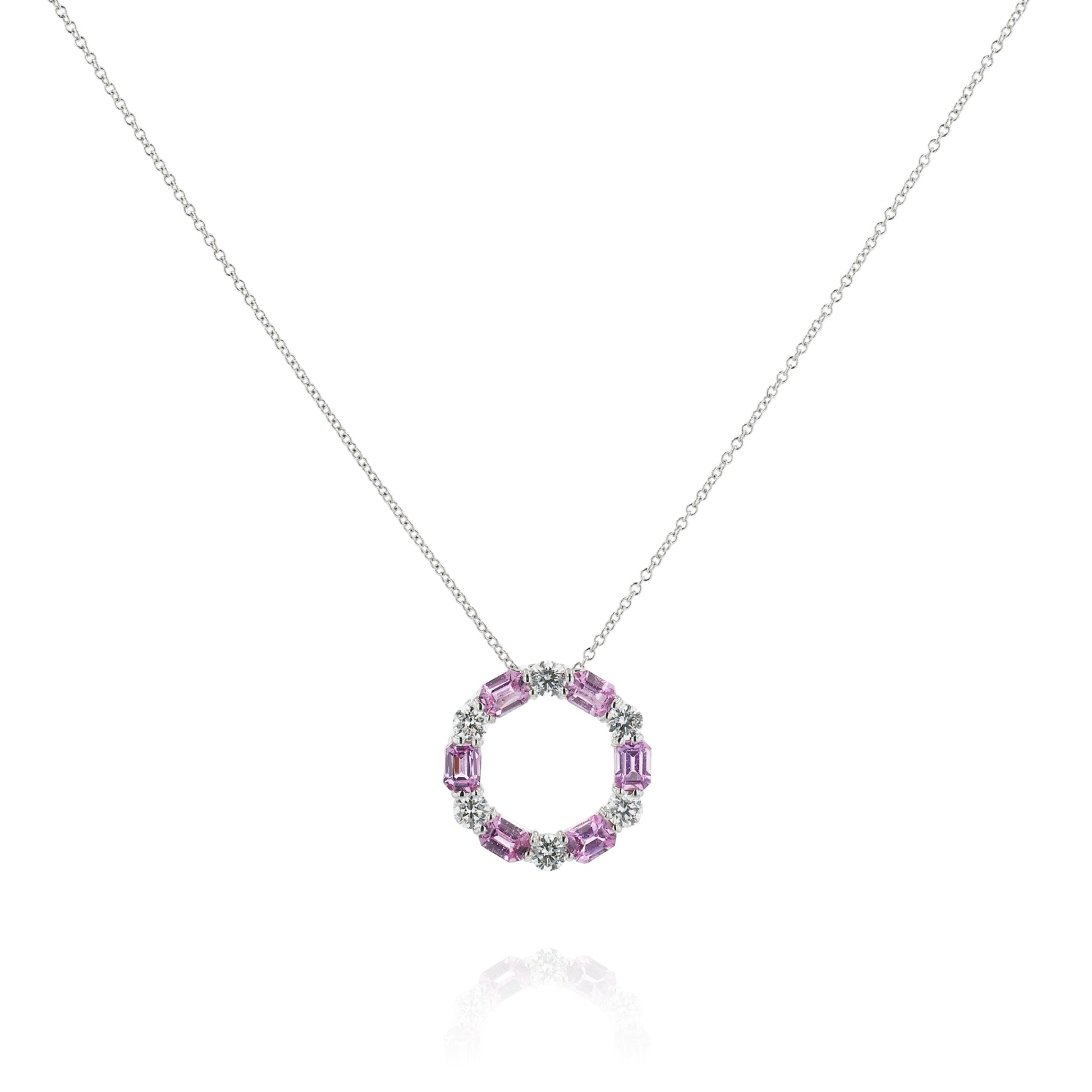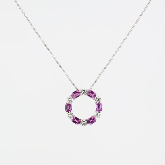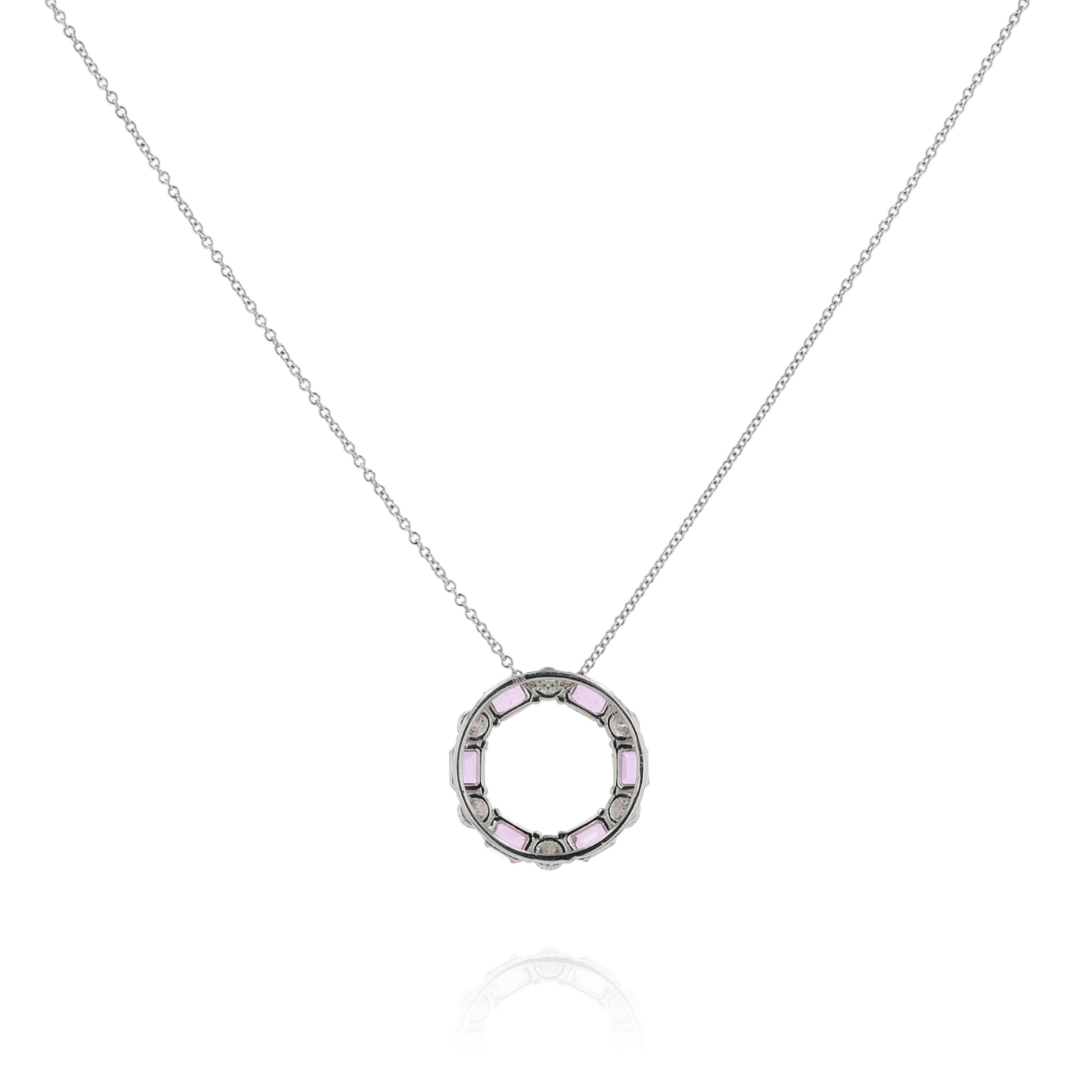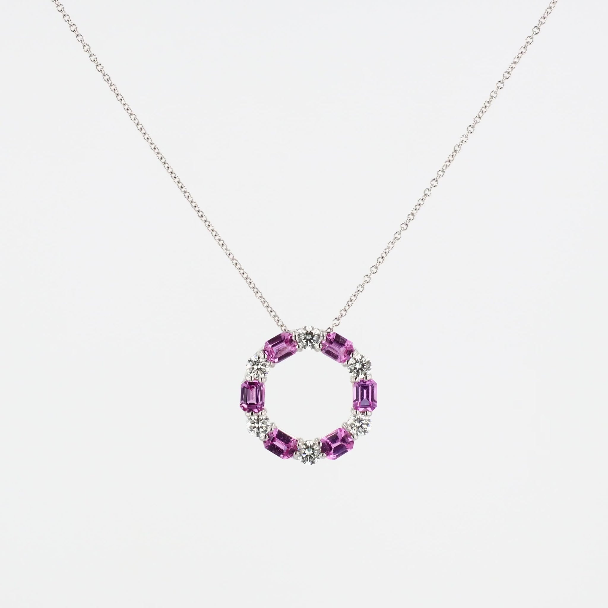 18k White Gold Open Circle Alternating Pink Sapphire and Diamond Pendant Necklace