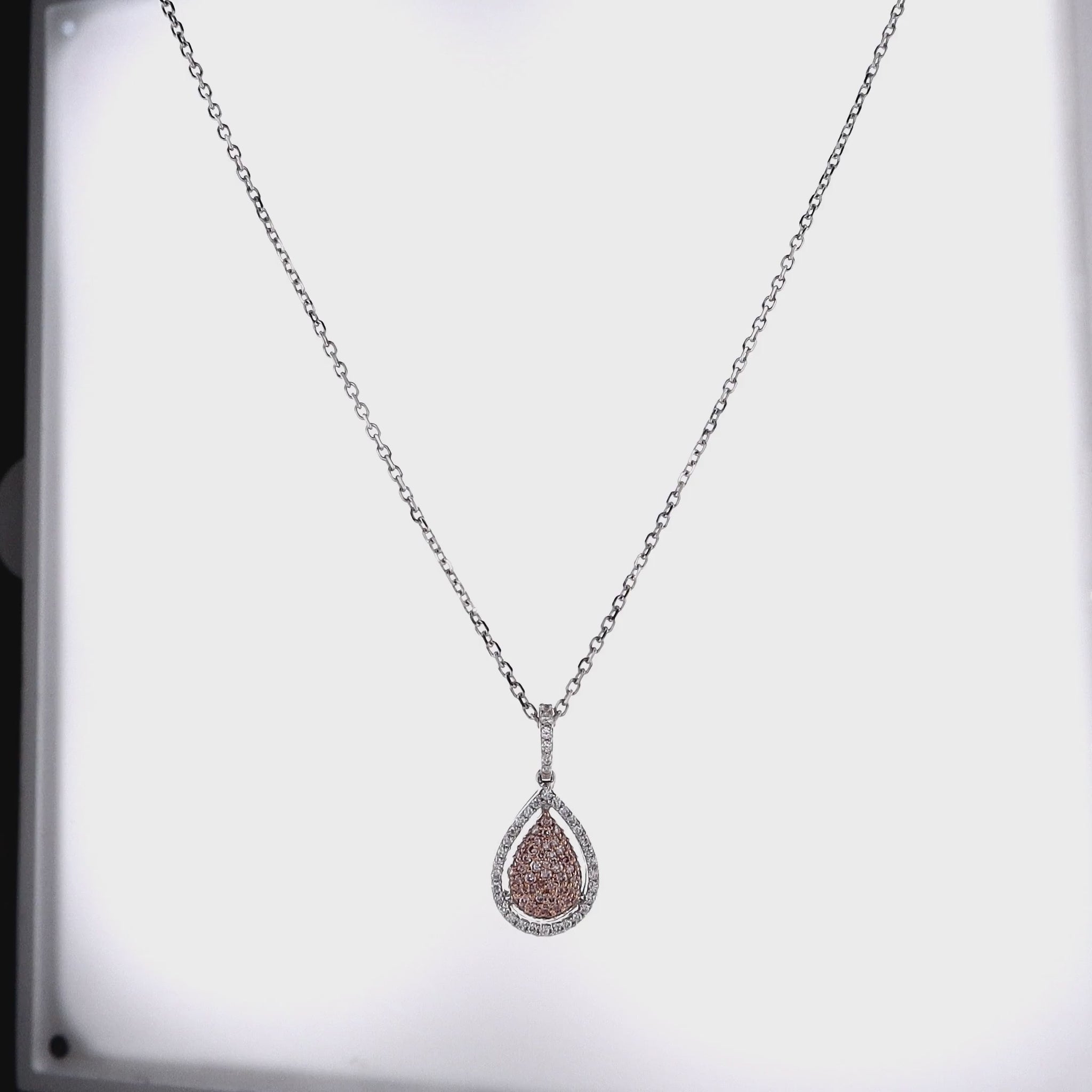 18k White Gold Pear Shaped Pink and White Diamond Halo Pendant Necklace