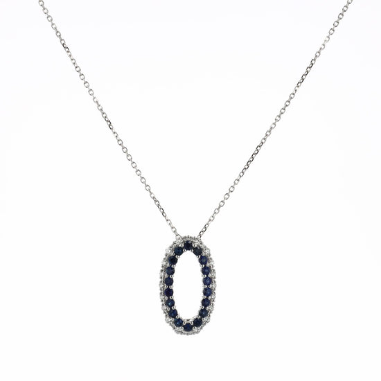 18k White Gold Sapphire and Diamond Open Oval Pendant Necklace