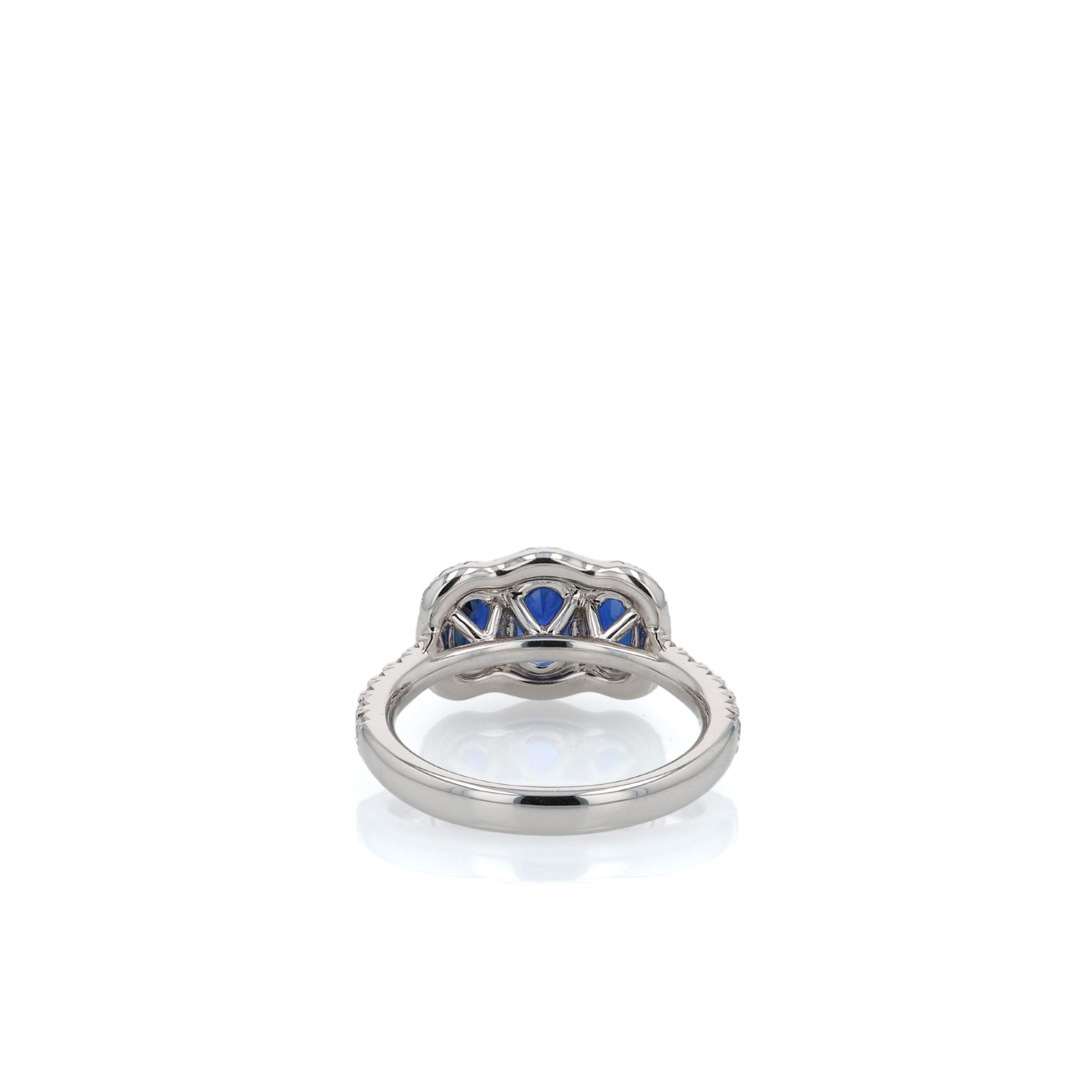 18k White Gold Sapphire and Diamond Three Across Halo Ring