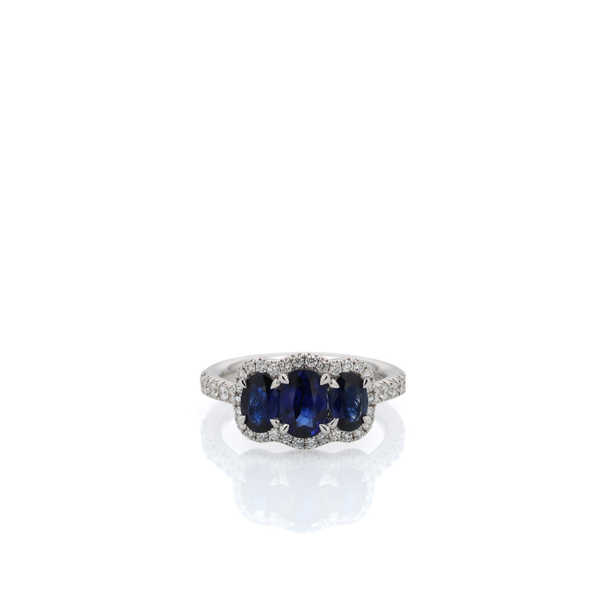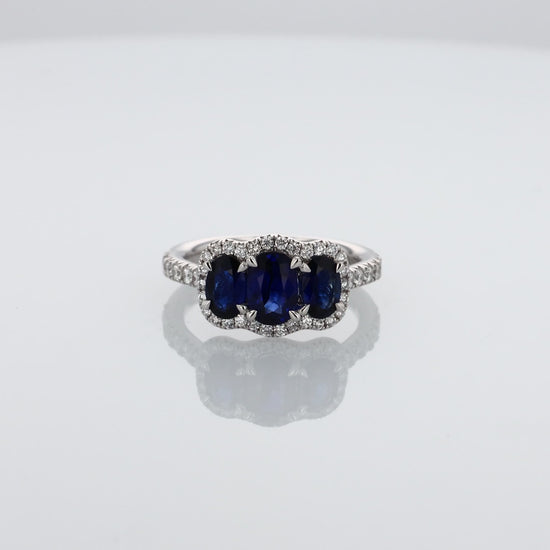 Stones: 3 Oval Blue Sapphire, 2.11ct Total Weight
