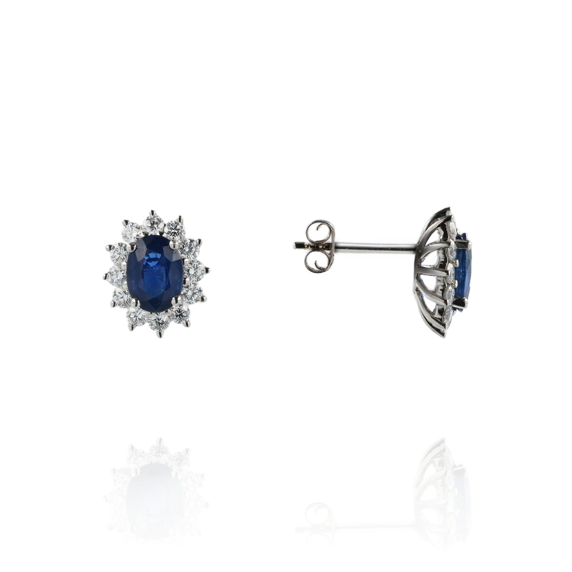 18k White Oval Sapphire and Diamond Halo Stud Earrings