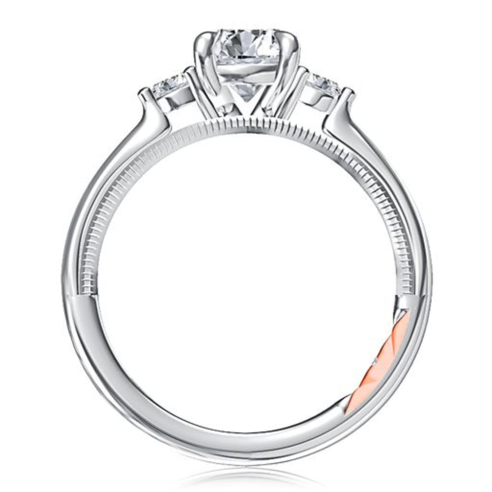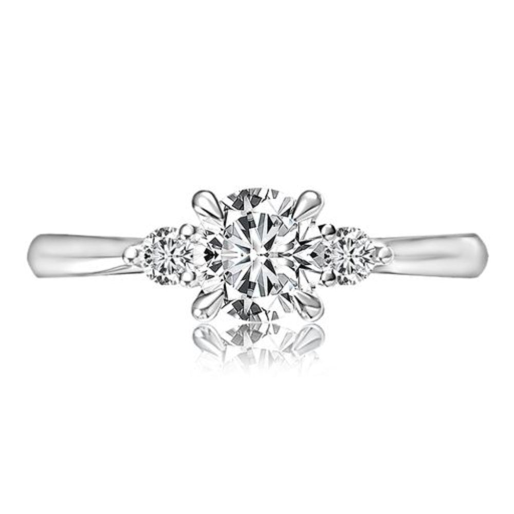 Love is in the air with the A. Jaffe Three Stone Round Engagement Ring! Make a statement with this classic ring, featuring a trio of round stones for an elegant and timeless look.