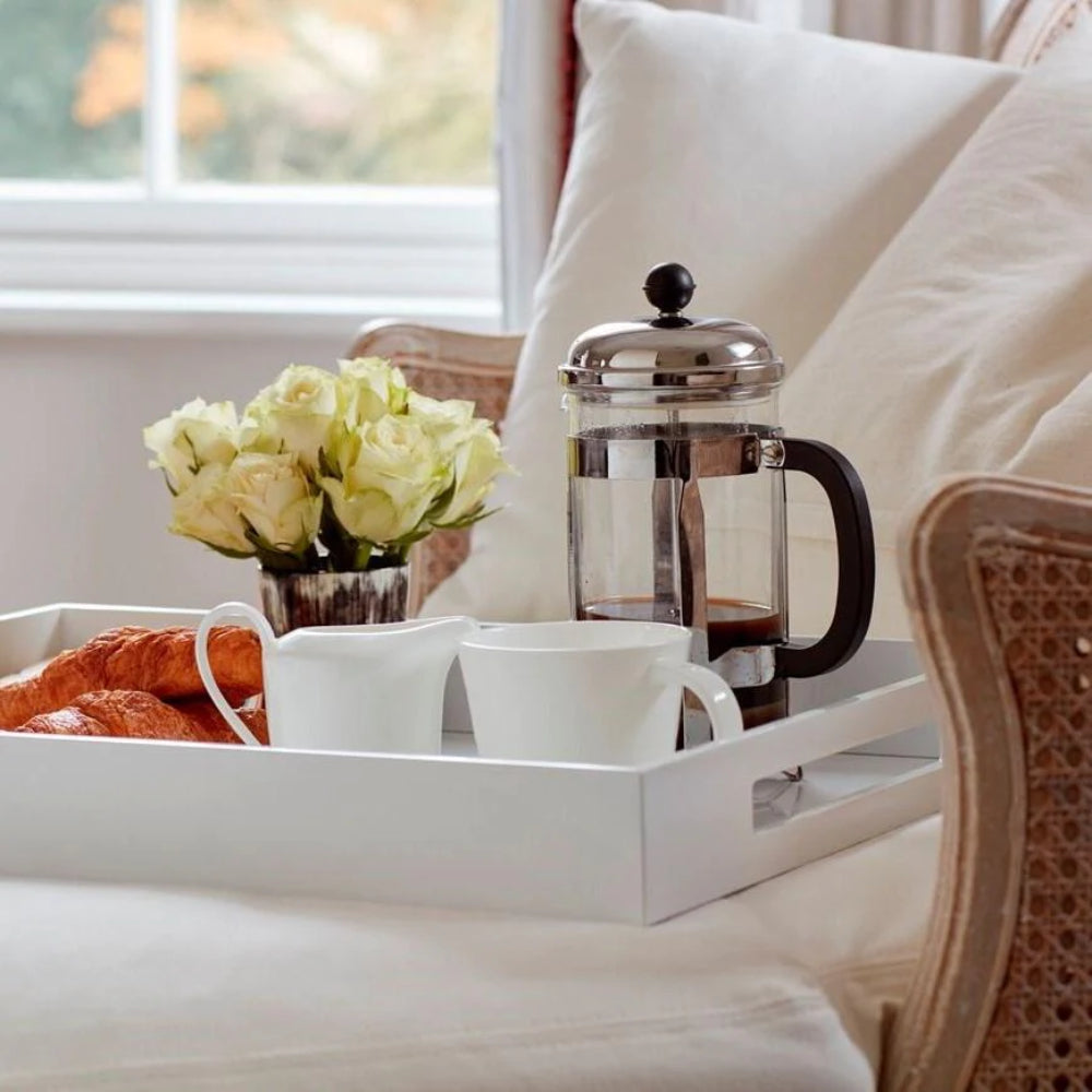 Our stunning 22" x 16" Lacquered White Tray features twenty coats of high gloss lacquer, hand-polished between each coat.