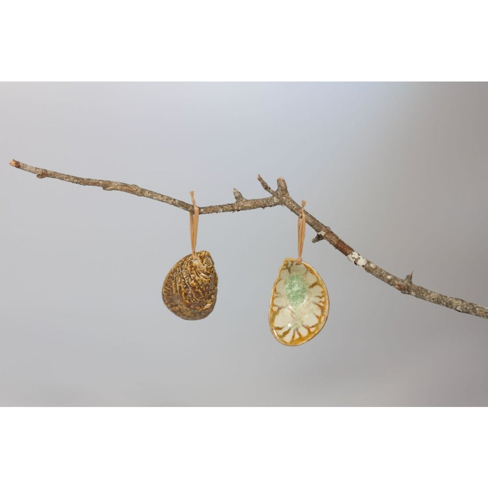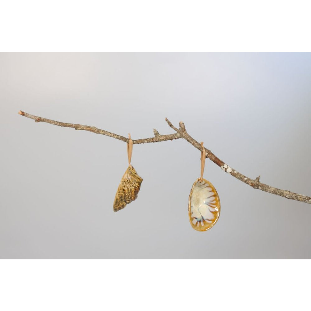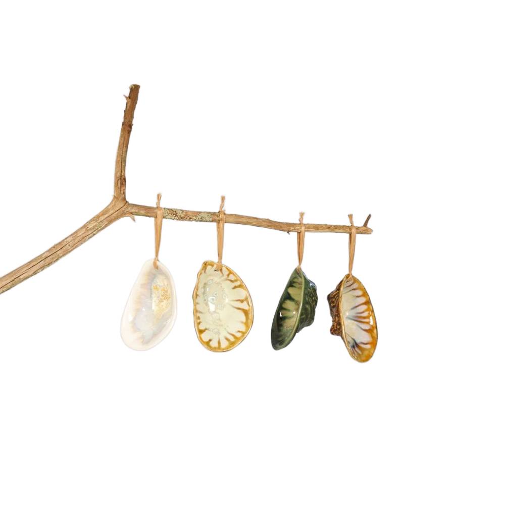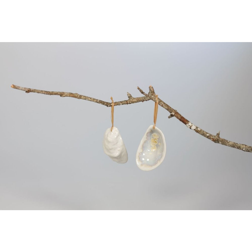 The Oyster Ornament is a beautiful tree decoration for the holidays, but is equally as stunning hung in your house or beach cottage. There is a wire loop on the top of the ornament to hang.
