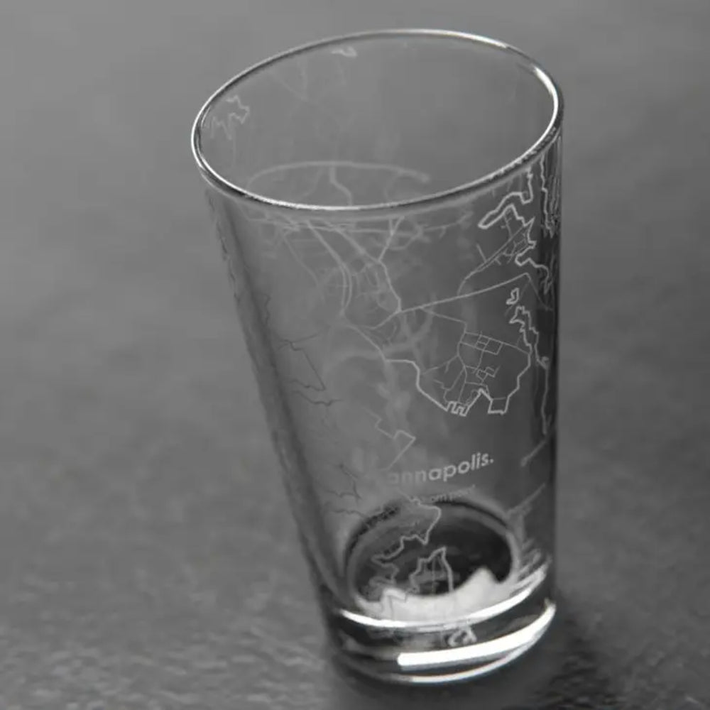 Our map drinkware and glassware collections are available for every u.S. City and town. Each pint glass is precision-etched entirely around the vessel with a beautifully detailed map of your favorite city’s streets, neighborhoods, and coordinates. The perfect gift for any occasion or addition to any home bar. Sturdy, high-quality glass made for a lifetime of use. Dishwasher-safe. Capacity – 16 oz. Weight - 0.75 lbs. Dimensions - 3.5" dia x 6" h.