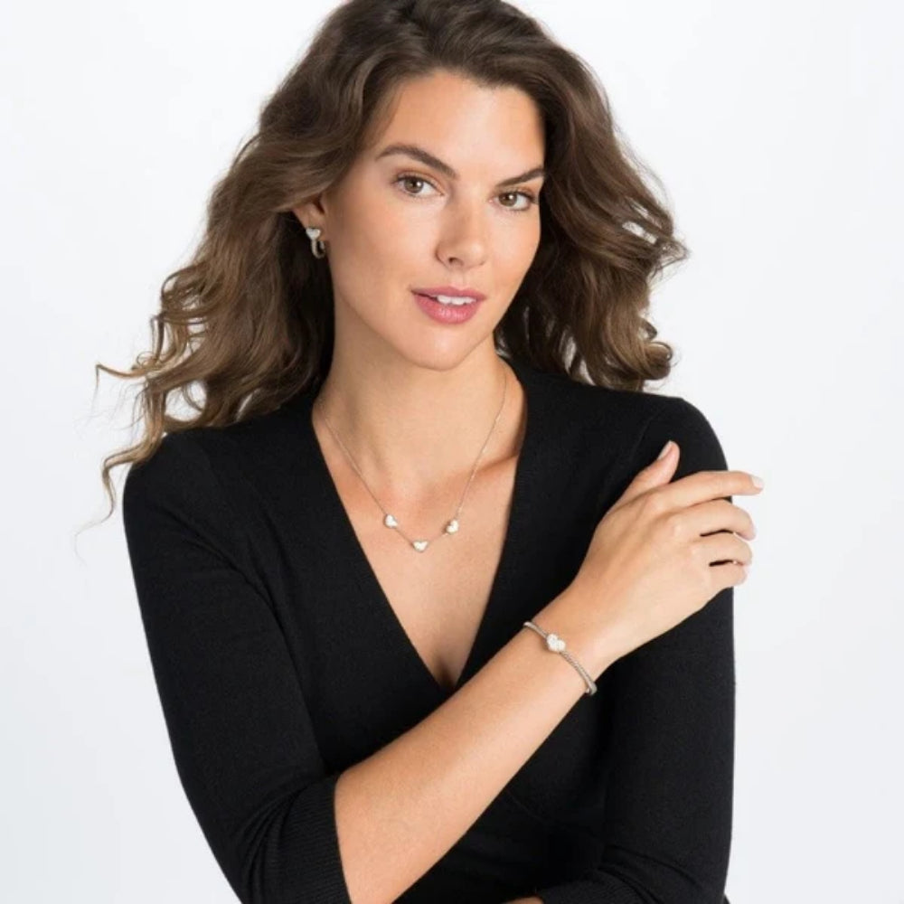 Etched into the band of this delicate bracelet are the words, Be filled with wonder and touched by peace. Inspired by the constellations, the Celestia Heart Hinged Bangle features a heart with fine quality crystals.