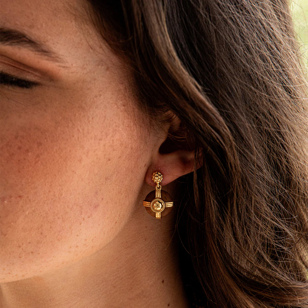Capucine de Wulf Gaia Round Drop Earrings- Hammered Gold/Teak