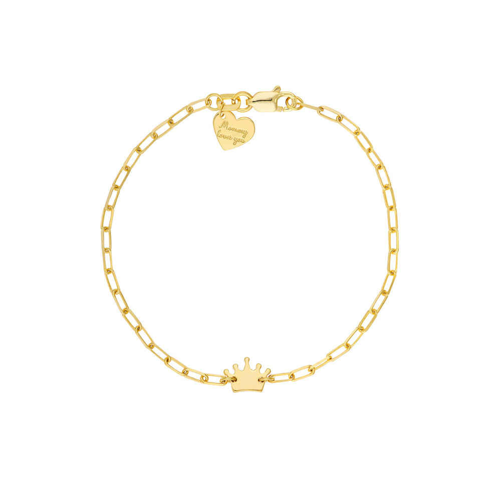 This bracelet makes a great gift for a beloved child in your life. The piece features a crown station on Paper Clip Chain.