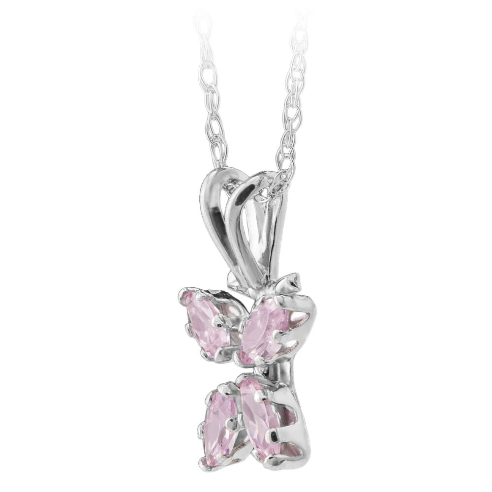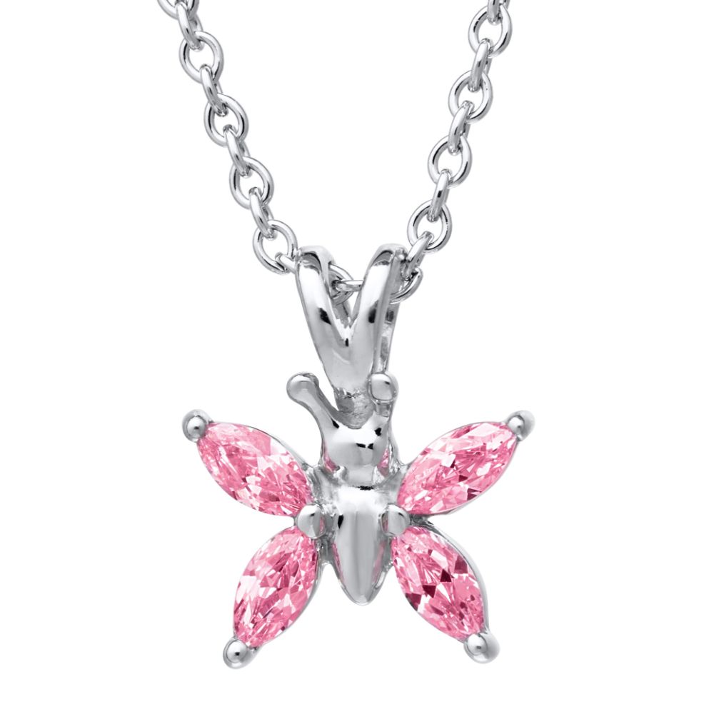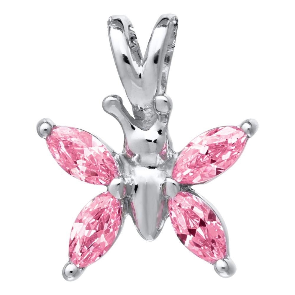 Sterling Silver butterfly pendant with pink marquis cubic zirconia with 14-16" chain.