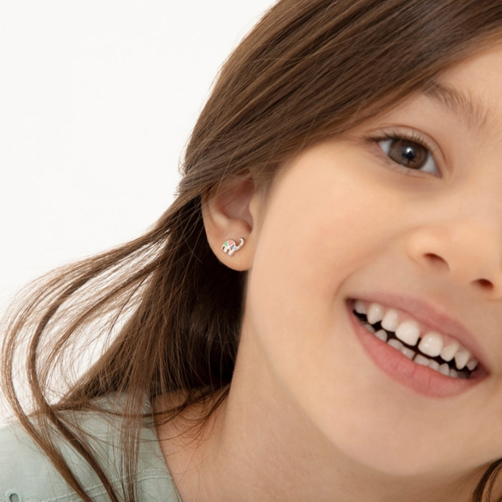 We cant get enough of these sweet multicolored enamel dinosaur stud earrings for little girls. A small dinosaur featuring pink, aqua, blue and lilac enamel throughout its little body. Carefully crafted from a  925 sterling silver which is naturally hypoallergenic for girls with sensitive ears. She will absolutely love the features of this sweet pair of earrings. Window Box is included.