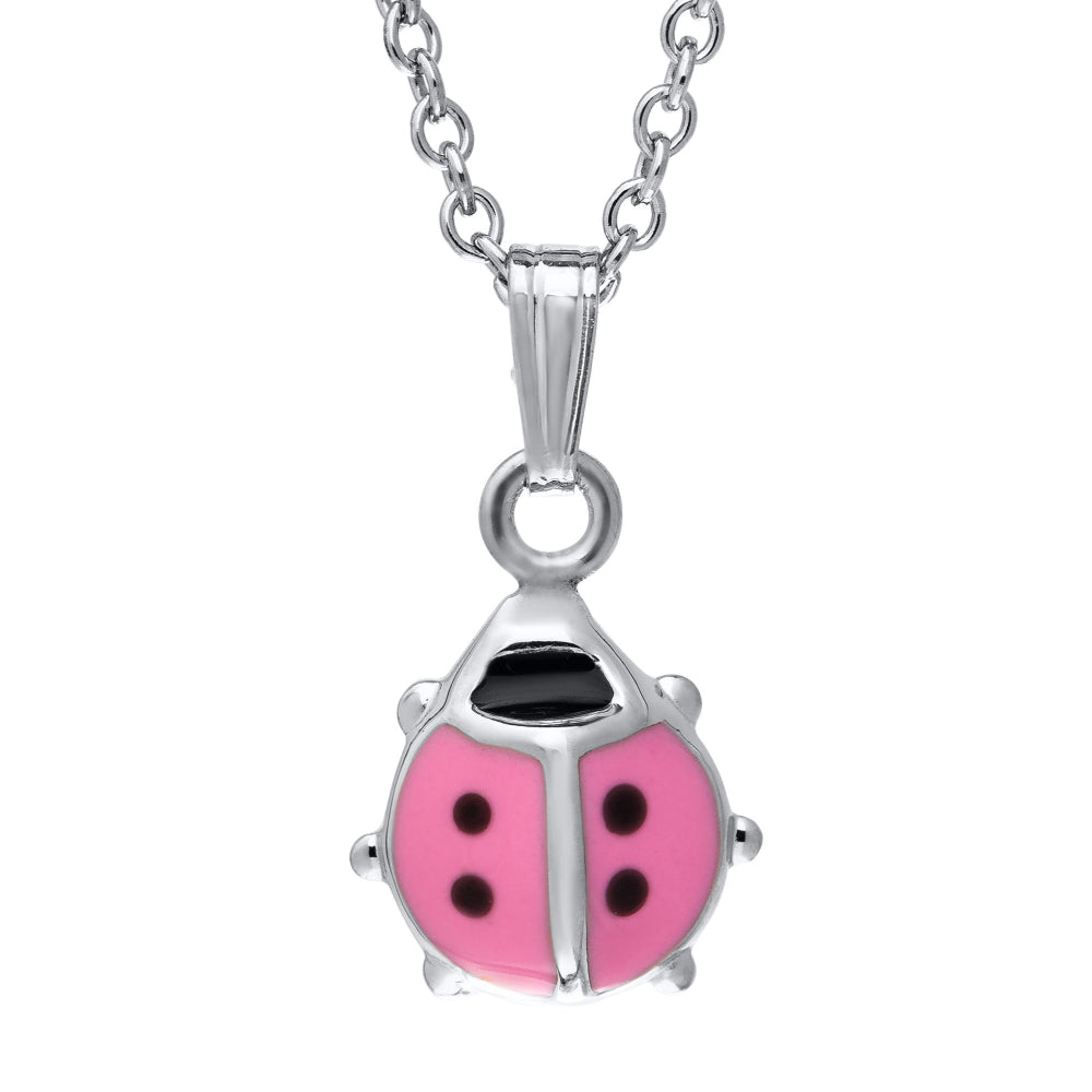 Children's Sterling Silver Pink Lady Bug Necklace 15"