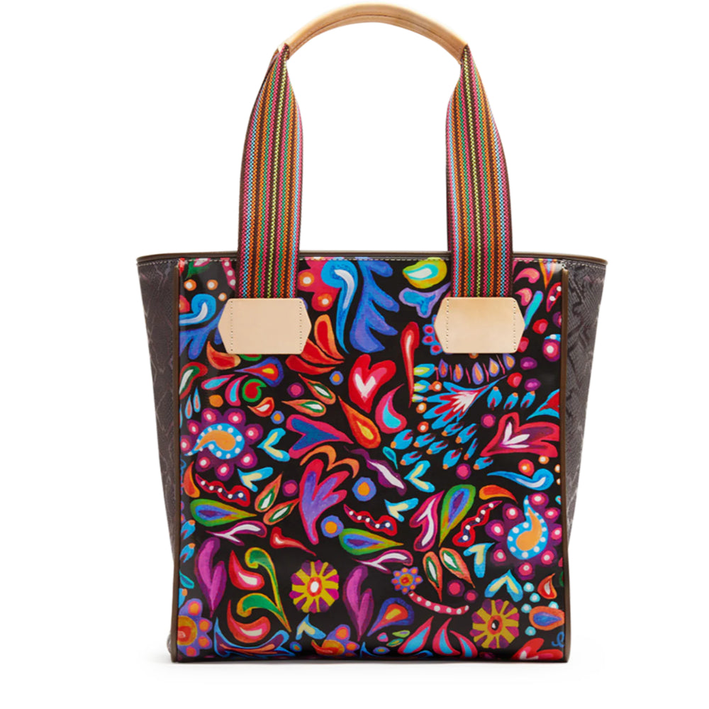 Our Sophia Classic Tote is perfect for life-on-the-go and it packs a statement with black iridescent snake print side panels. Topped with comfortable woven handles, this multi-functional tote is trimmed in natural leather and crafted to hold its shape. Our tote features a roomy interior and pockets, ideal for carrying your laptop, keys, and phone.