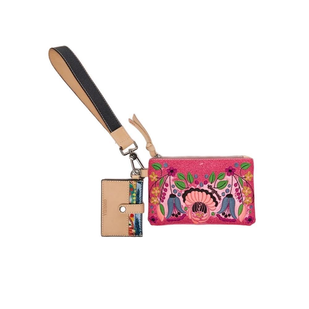 The Combi, a combination of on-the-go accessories, is a new way to carry your keys, cards, and the small stuff together or separately. This embroidered wristlet wallet includes a pocket pouch, secure card slot wallet and fits comfortably around your wrist.