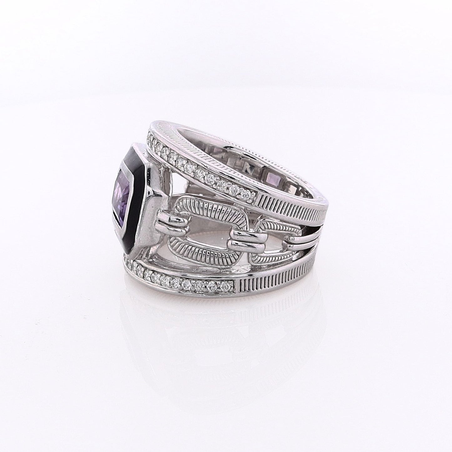 Judith Ripka Adrienne Band Ring With Enamel, Amethyst and Diamonds