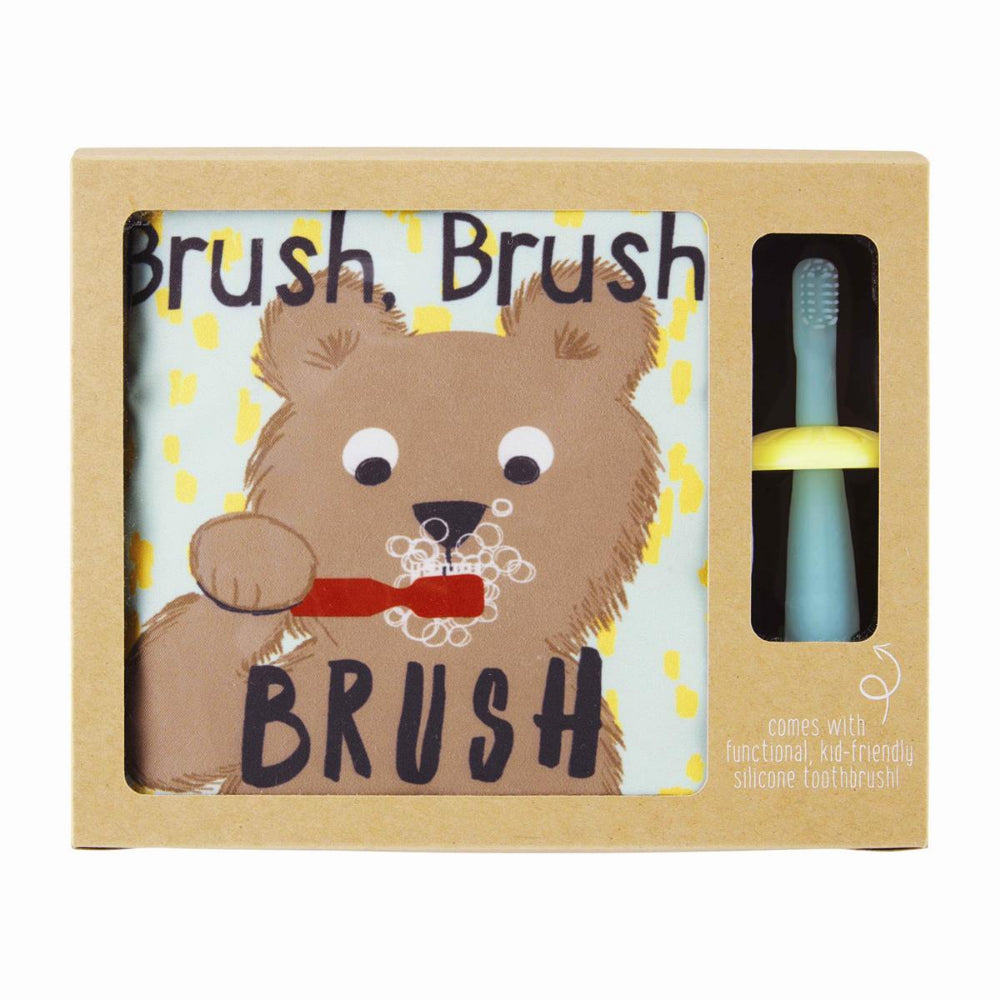 2-piece set. Plush book encourages little ones to brush their teeth. Includes baby safe mirror and BPA free silicone toothbrush. Ages 6M+.