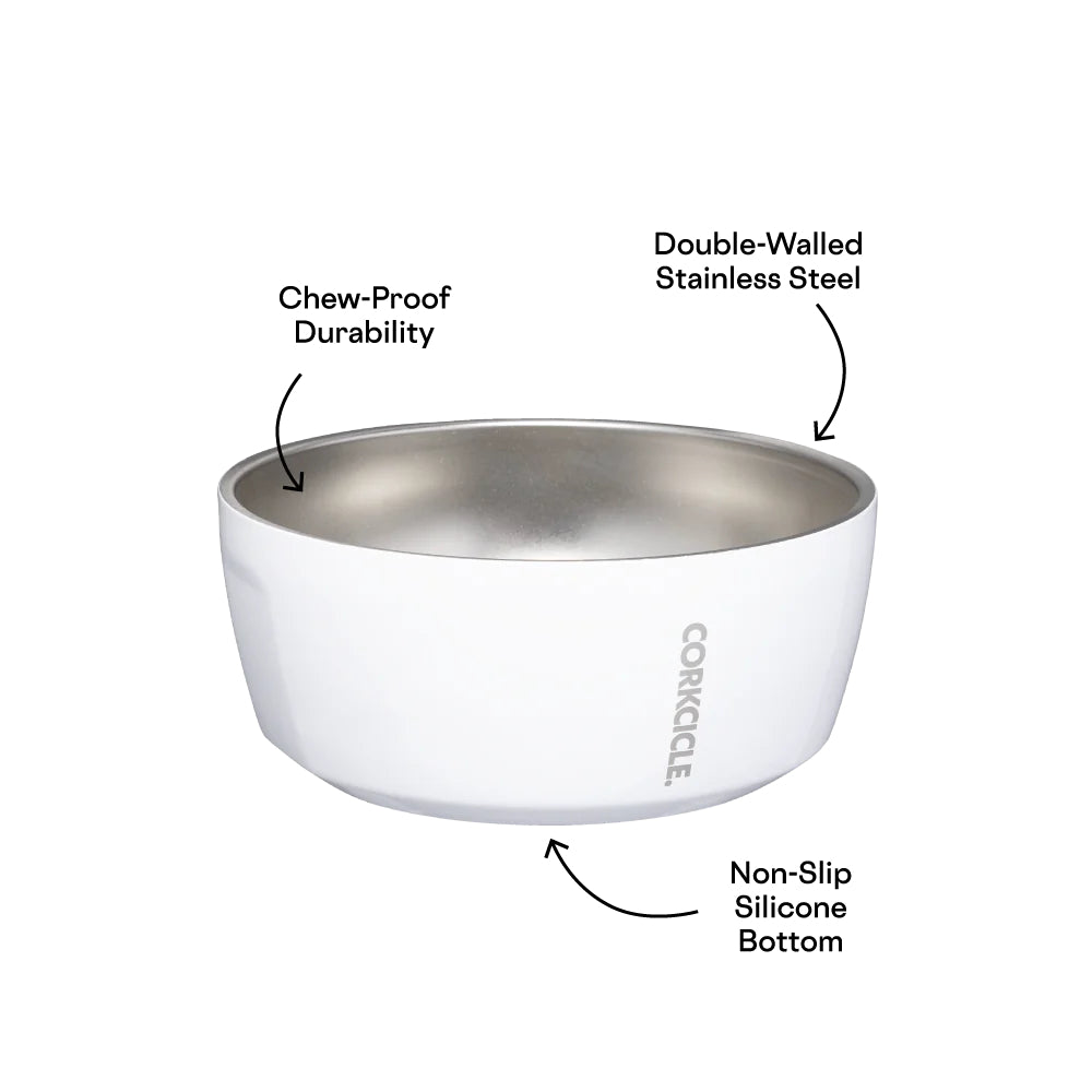 Meet the last dog bowl you’ll ever need. Crafted in enamel-coated double-wall stainless steel, Corkcicle Dog Bowl elevates mealtime and water breaks at home or on the go.Our signature non-slip bottom and chew-proof durability make for a mess-free meal, and with its three stylish colorways, Dog Bowl can even match your drinkware