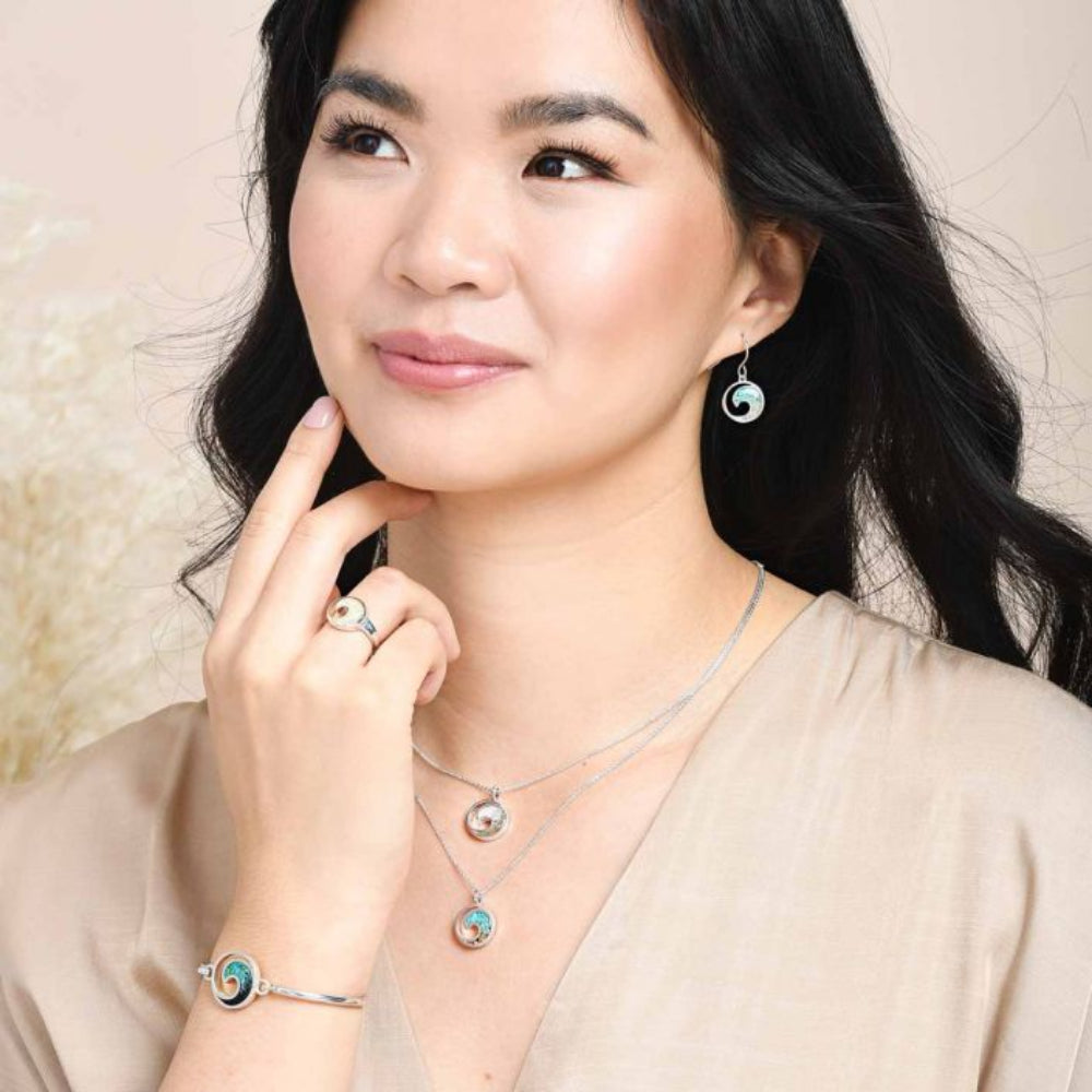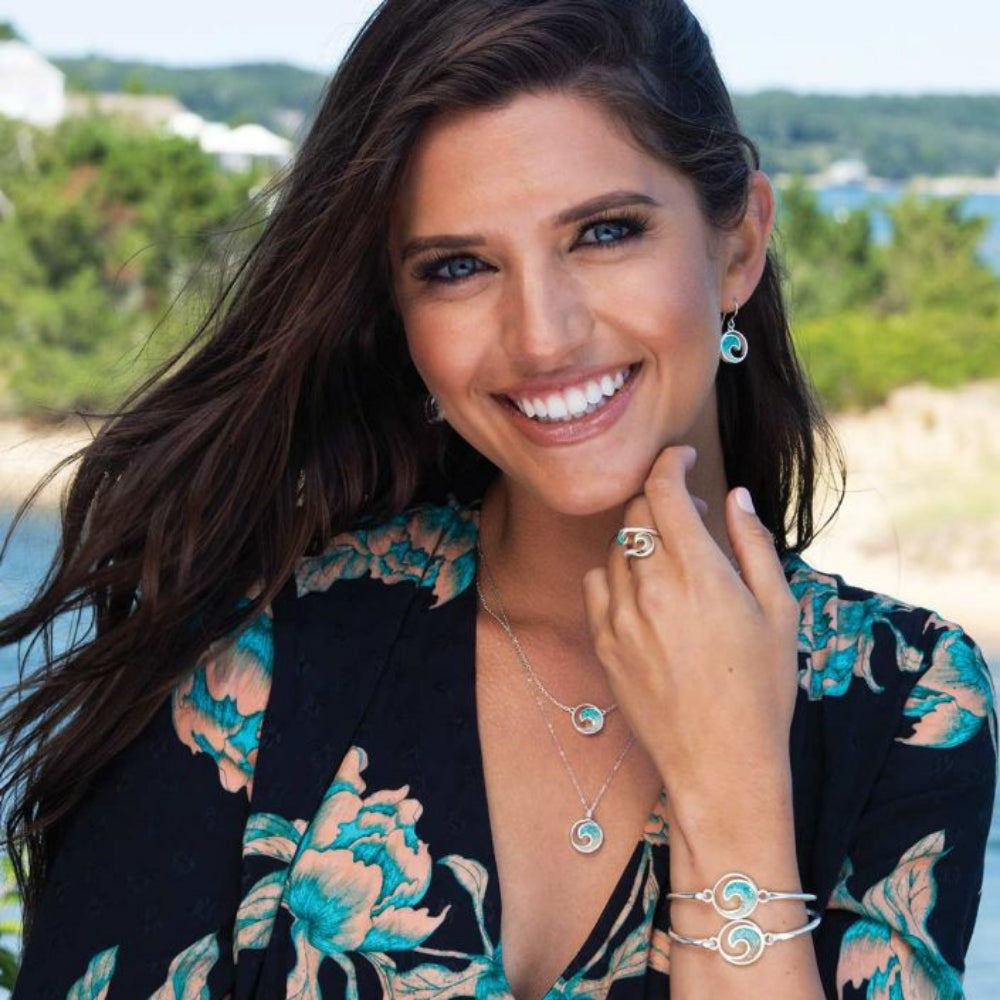 Keep your favorite coastal travels close at hand with this beautiful sterling silver wave bracelet with our Turquoise Gradient Technique. This handcrafted piece is sterling silver, filled with your choice of sand or earth element and layered to a gem-like finish. It’s the perfect everyday reminder of your favorite travels.