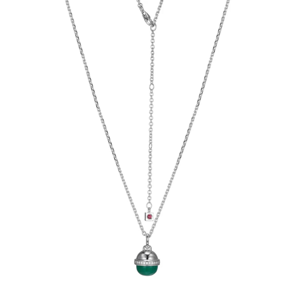 Elle Sterling Silver "Pivot" Green Agate Cabochon Necklace