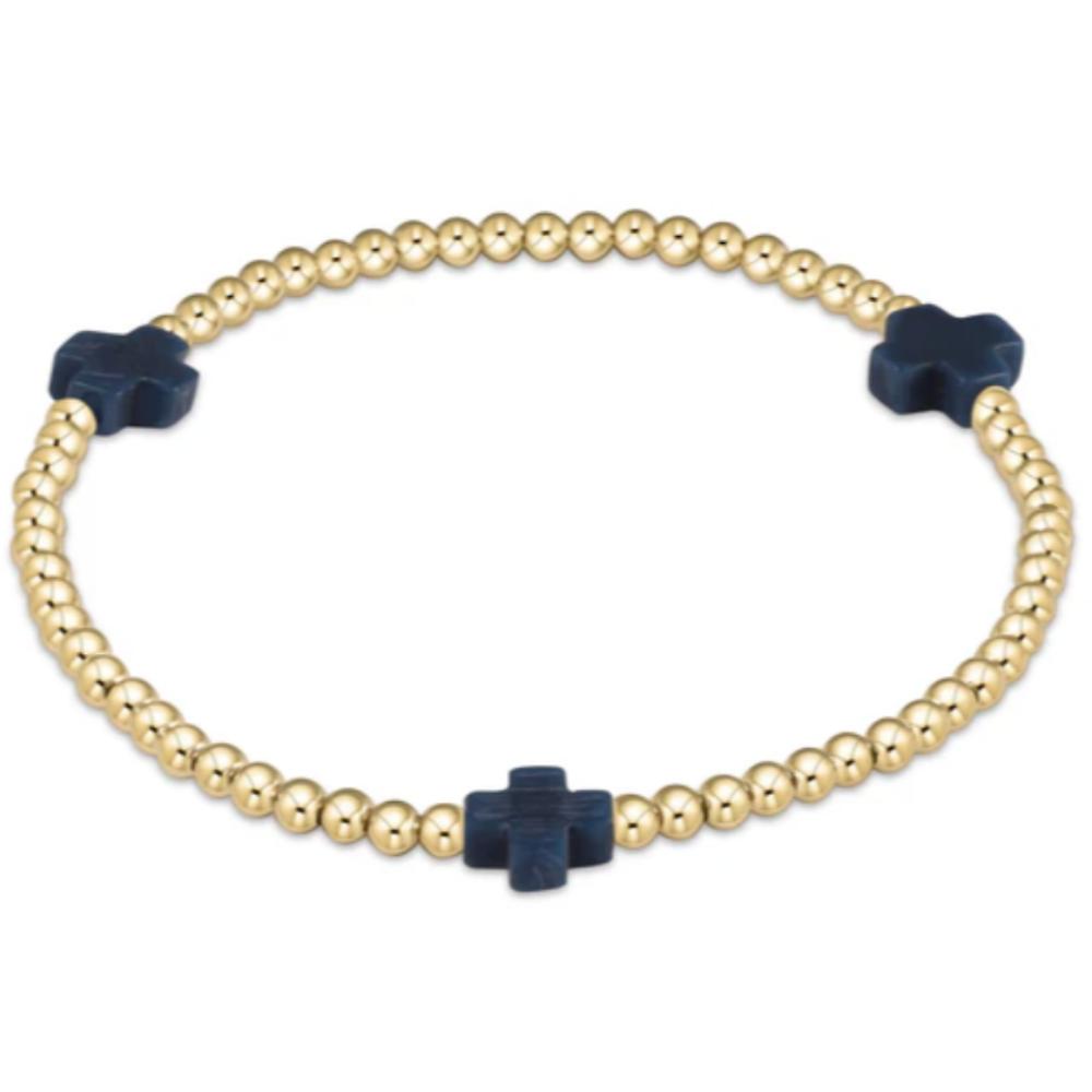 enewton 5.5" egirl Signature Cross Gold Pattern 3mm Bead Bracelet - Navy