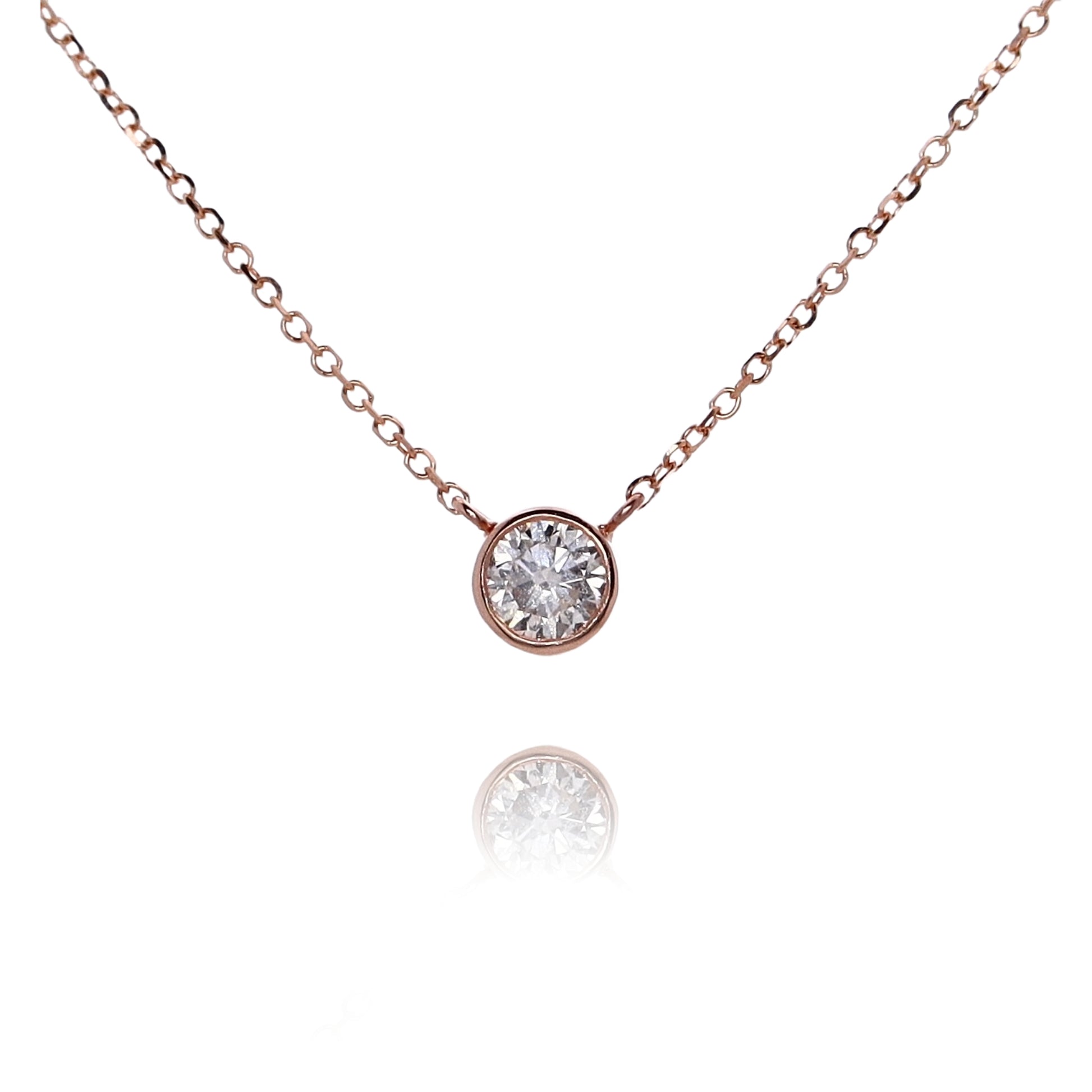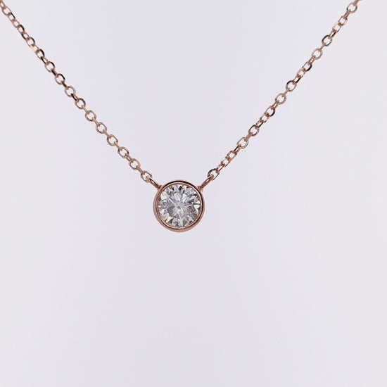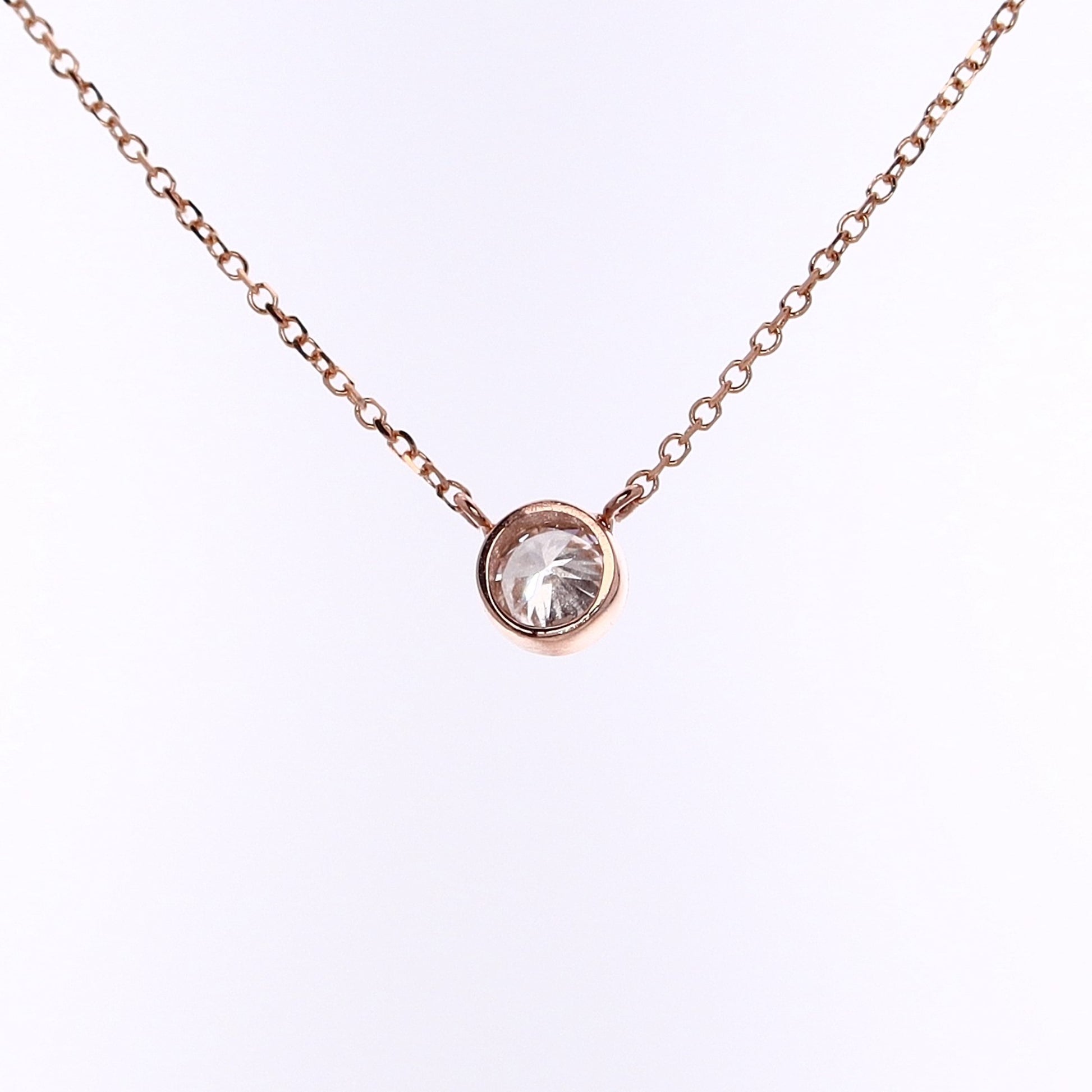 Estate 14 Karat Rose Gold Solitaire Diamond Pendant Necklace