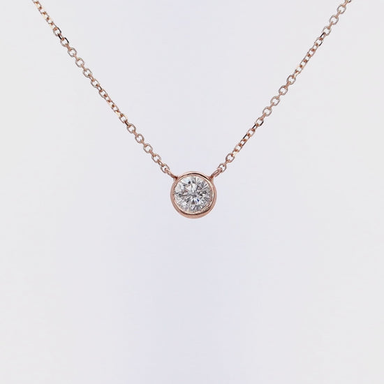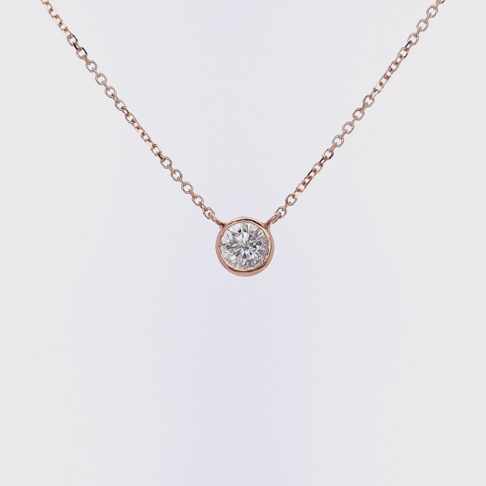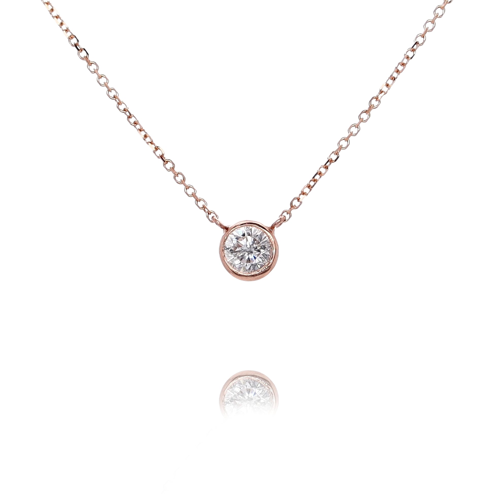 Estate 14 karat Rose Gold Solitaire Diamond Pendant Necklace